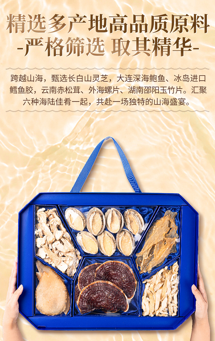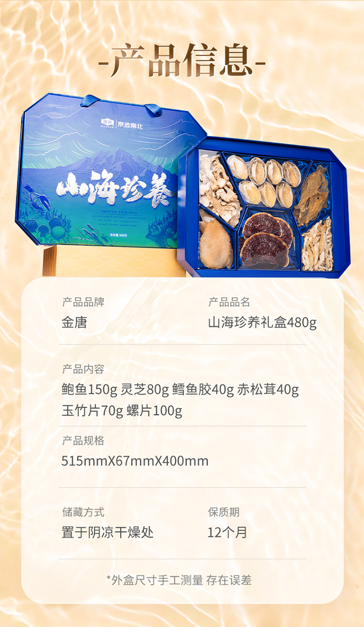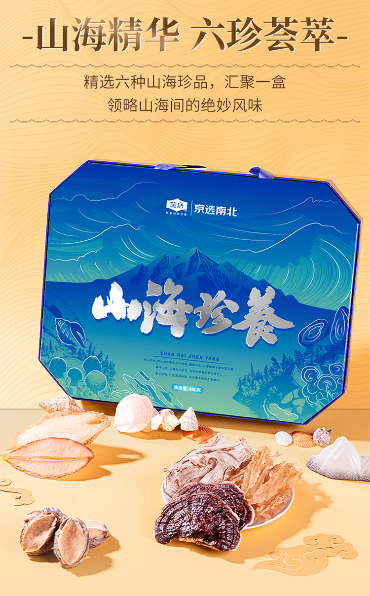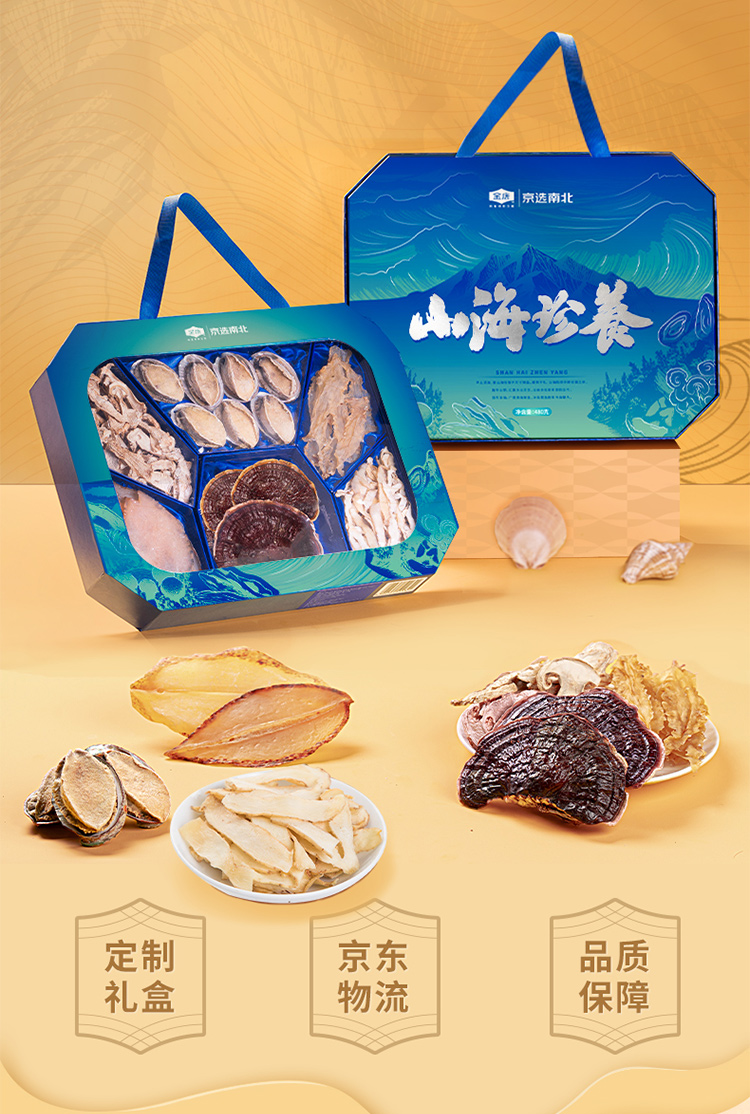 金唐(JinTang)山海珍养礼盒480g年货礼盒鲍鱼灵芝松茸干货(单位:盒) 蓝色