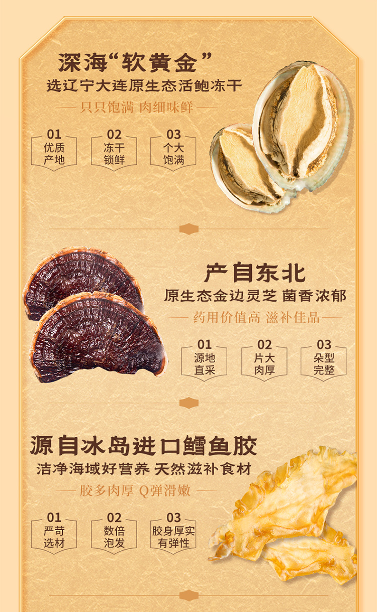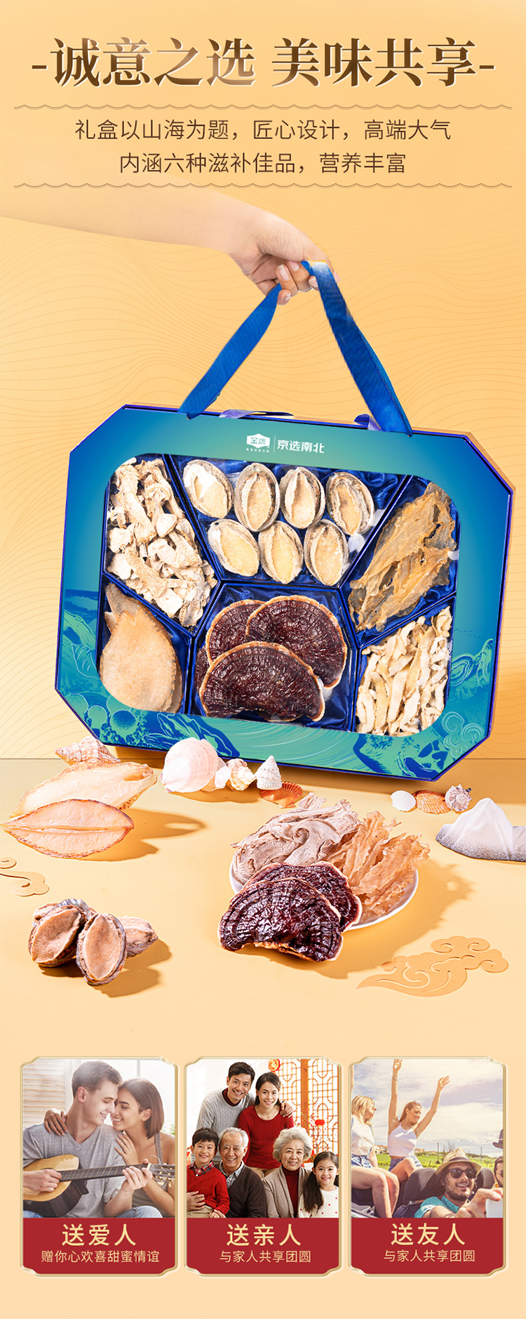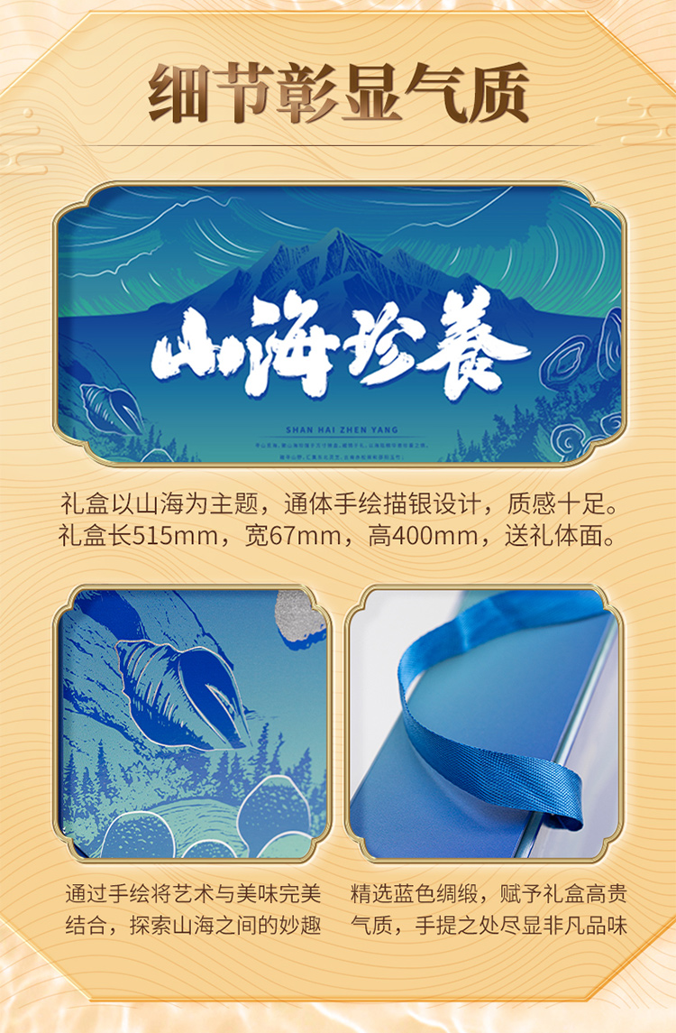 金唐(JinTang)山海珍养礼盒480g年货礼盒鲍鱼灵芝松茸干货(单位:盒) 蓝色