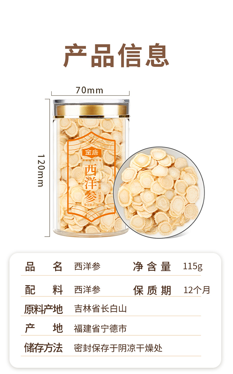 金唐(JinTang)甄选西洋参片115g(单位:罐) 白金
