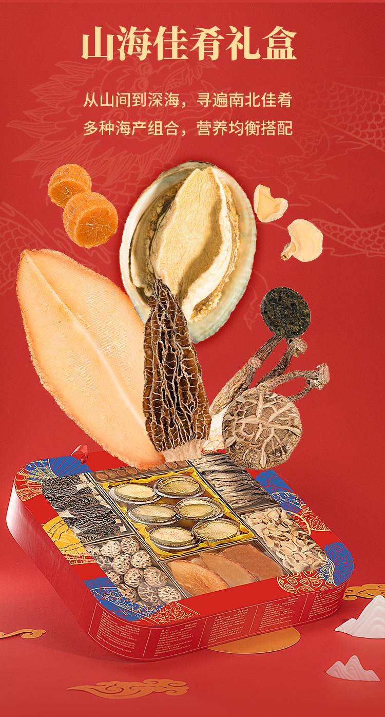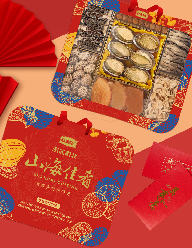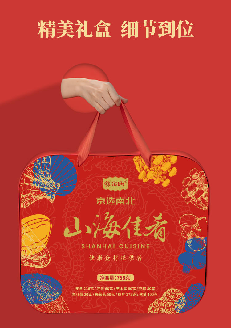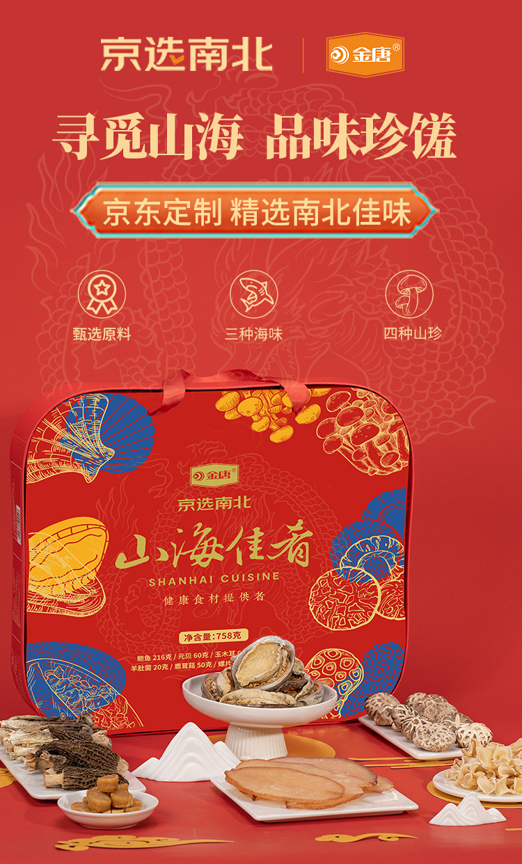 金唐(JinTang) 山海佳肴礼盒海鲜羊肚菌758g(单位:盒) 红色