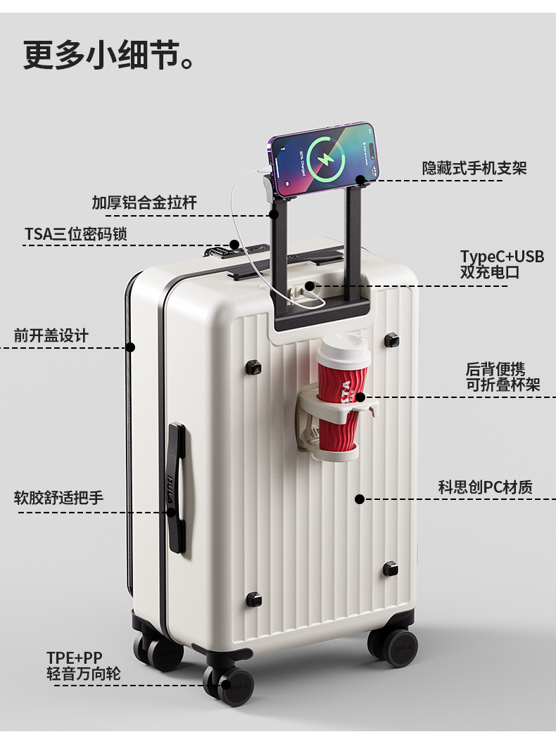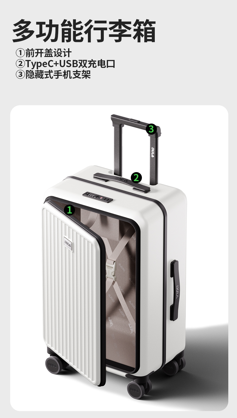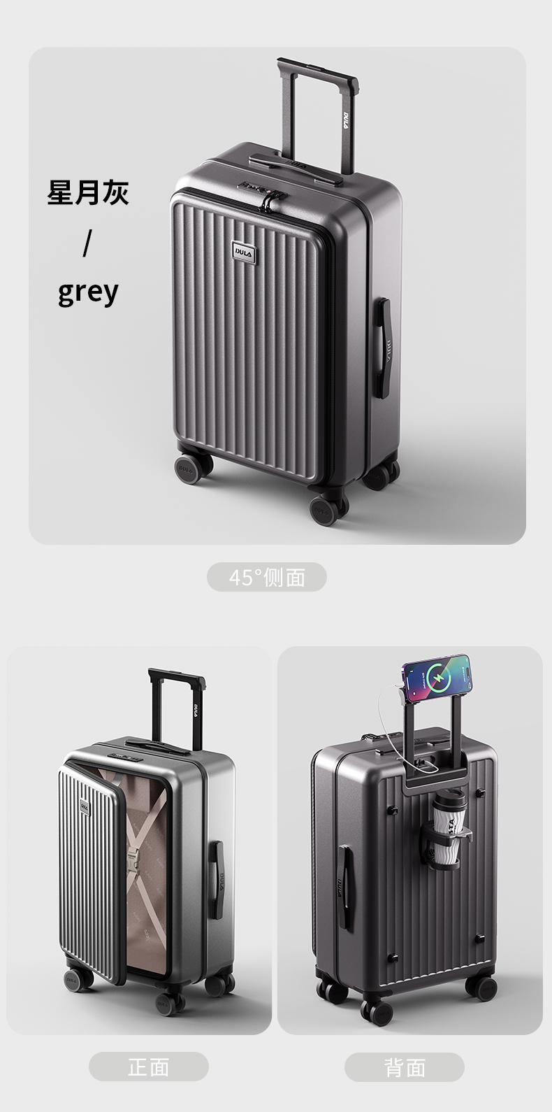 DULA D3010 大深仓侧开口系列 拉链款行李箱 24寸 星空灰(单位:个)