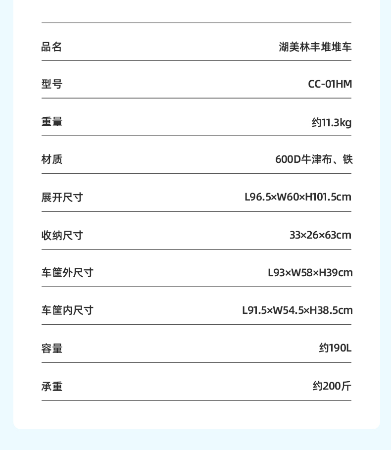 爱路客CC-01HM湖美林丰折叠聚拢堆堆车(单位:辆) 水蓝色