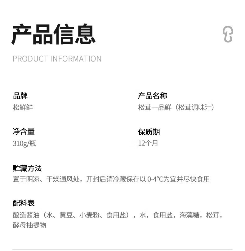 松鲜鲜 一品鲜 310g 松茸 黑色(单位:瓶)