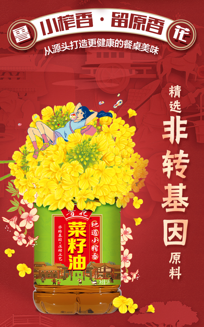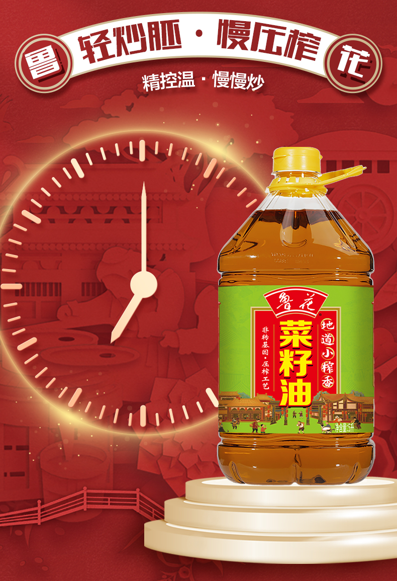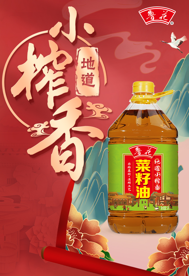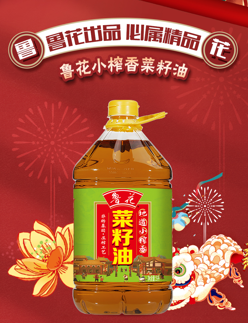鲁花 地道小榨香菜籽油 5L 非转基因食用油 香槟黄(单位:桶)
