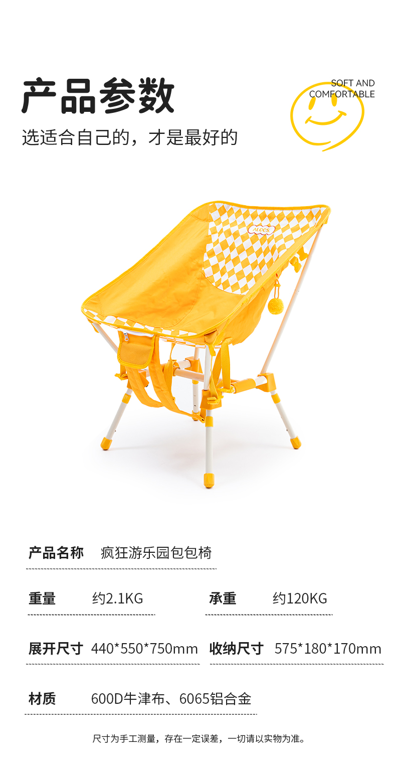 爱路客 OF-17LY 展开尺寸440*550*750mm收纳尺寸575*180*1 爱路客露营折叠包包椅 黄色(单位:把)