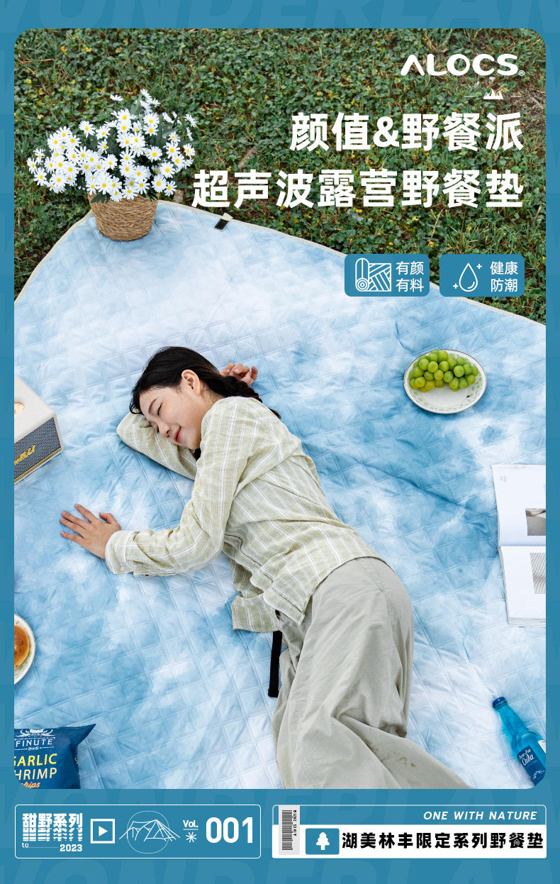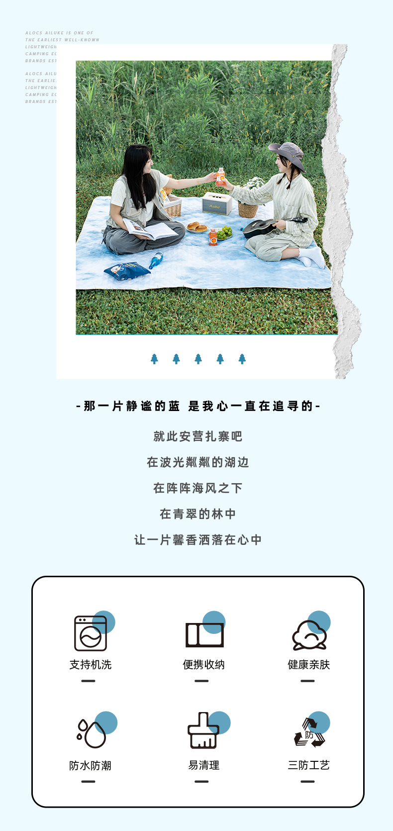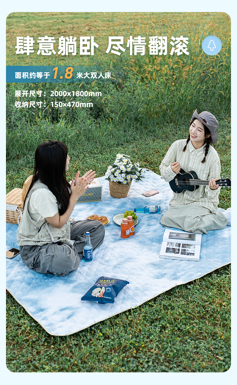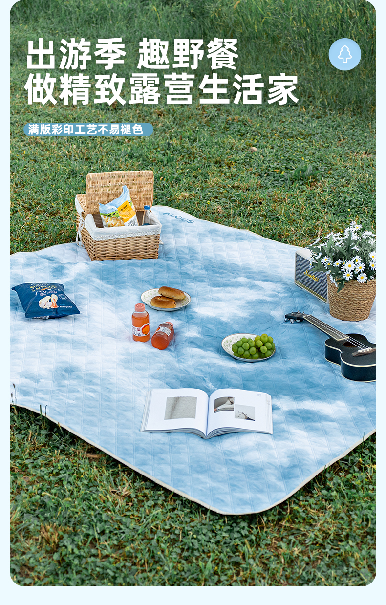 爱路客OT-187HM湖美林丰加厚防水防潮野餐垫(单位:个) 水蓝色