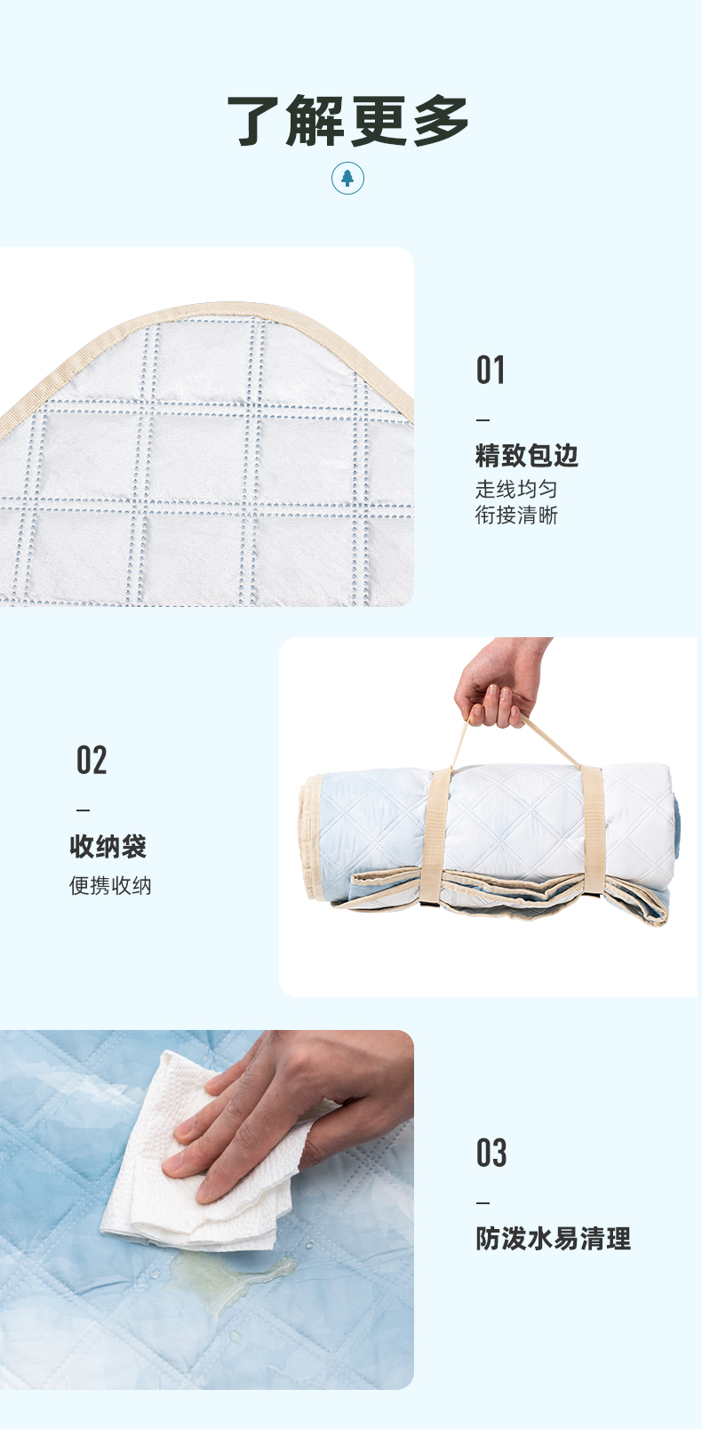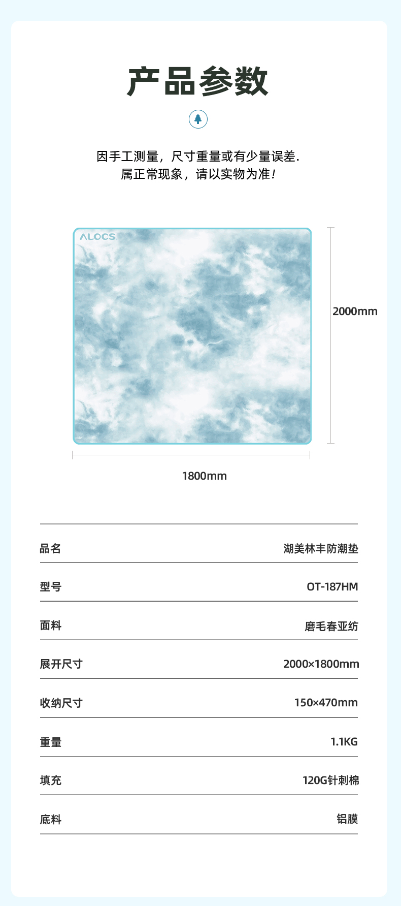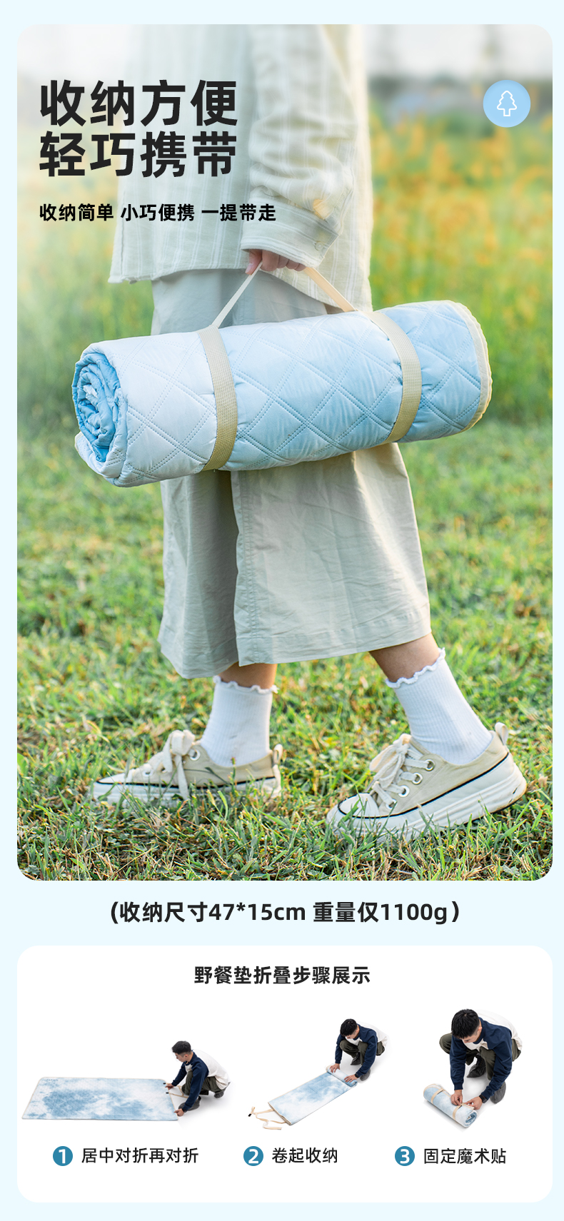 爱路客OT-187HM湖美林丰加厚防水防潮野餐垫(单位:个) 水蓝色