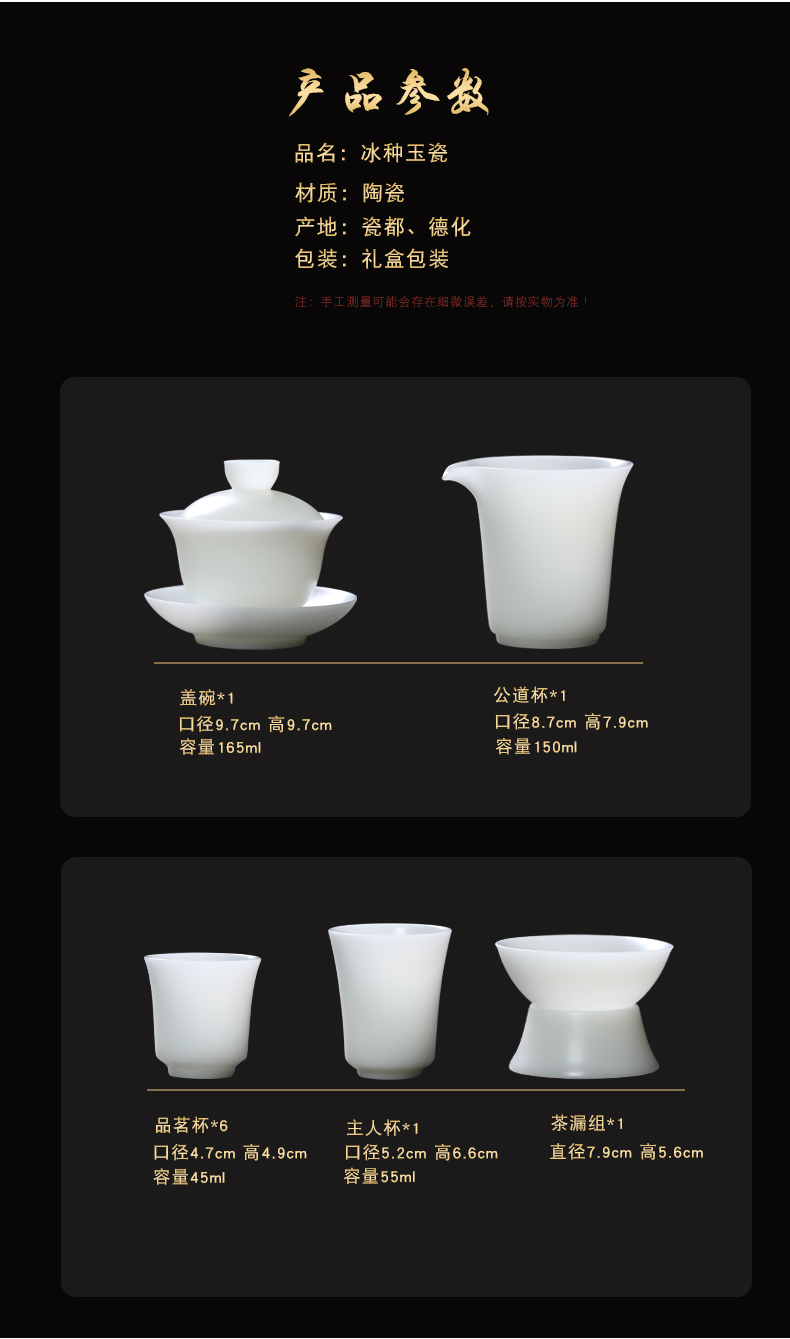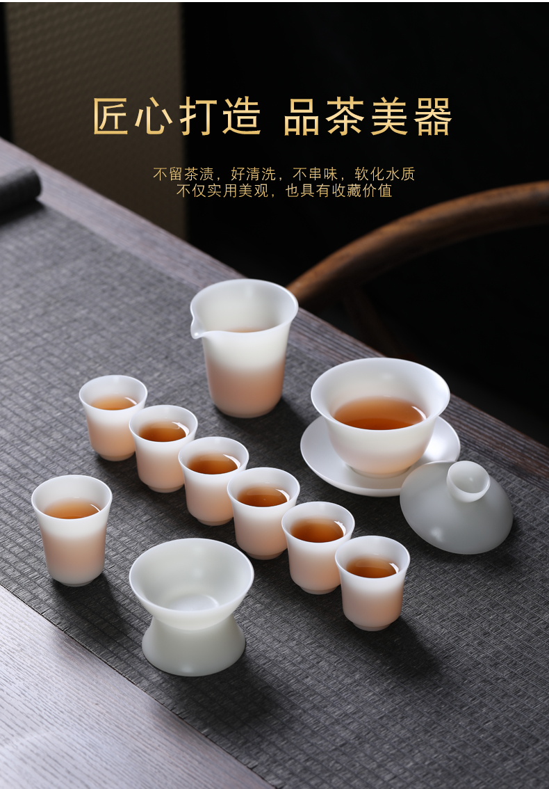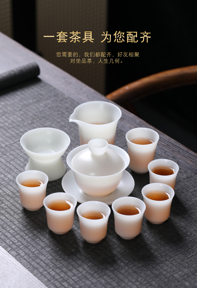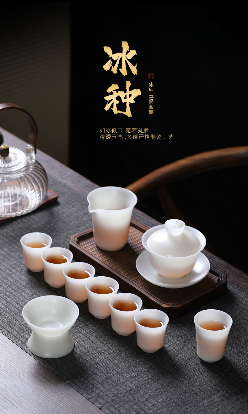 MULTIPOTENT YQ561 10头 整套茶具冰种盖碗茶杯 白色(单位:套)