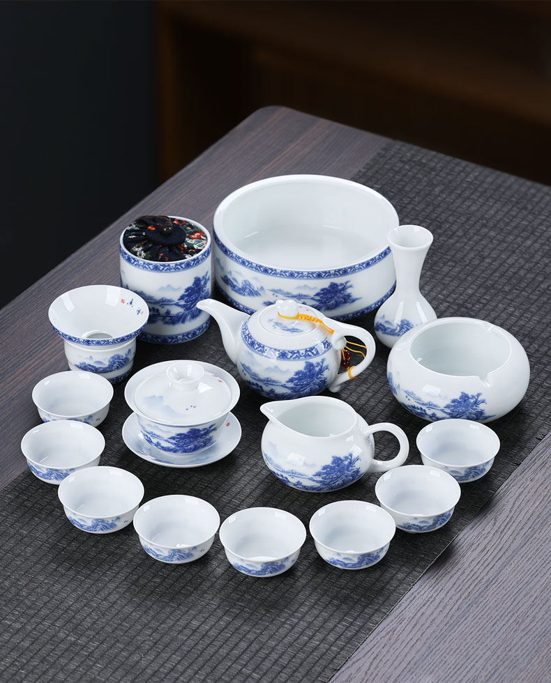 MULTIPOTENT YQ-TJ-ZTCJ-202104-01 16头 整套茶具白瓷溪山访友 白色(单位:套)
