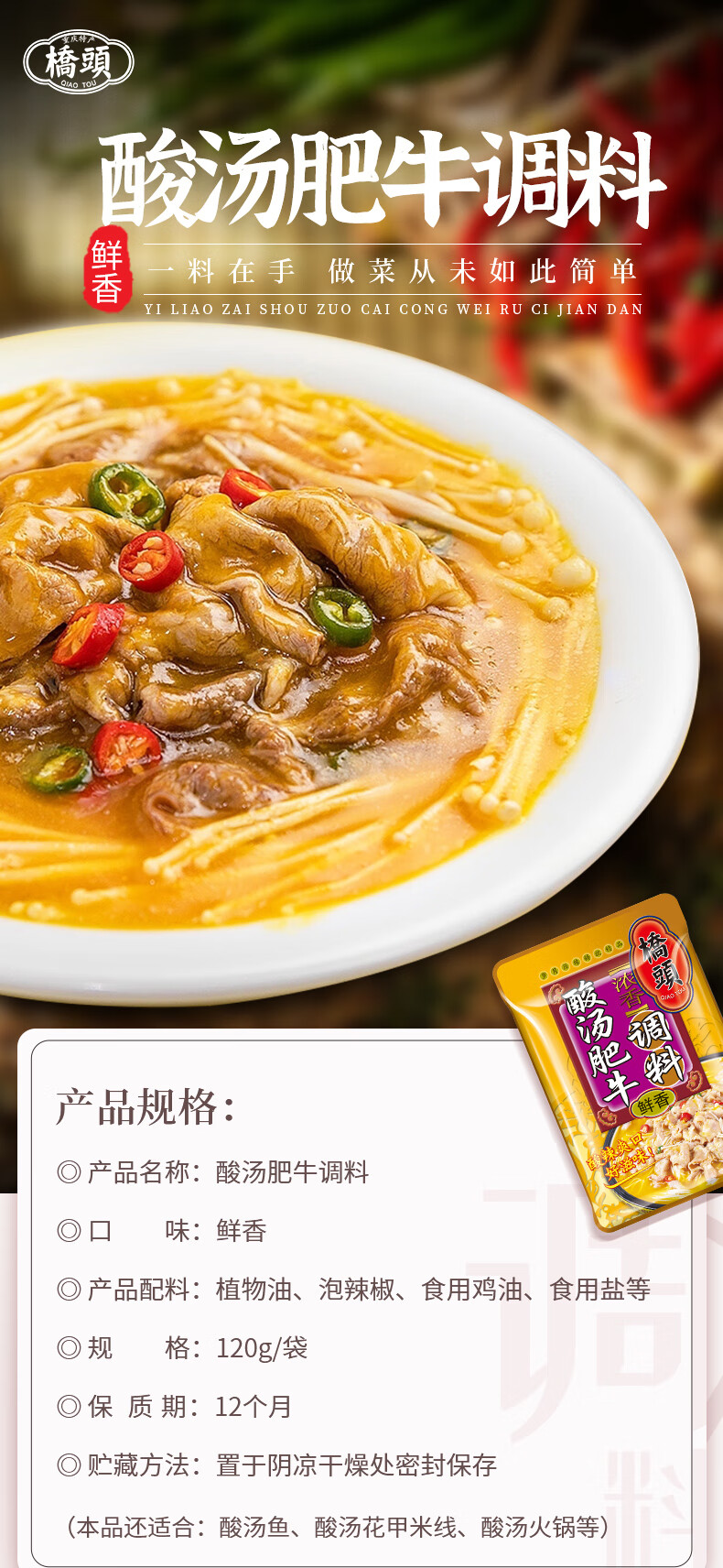 桥头 酸汤肥牛 120g*3 酸辣开胃 鹅仔黄(单位:袋)