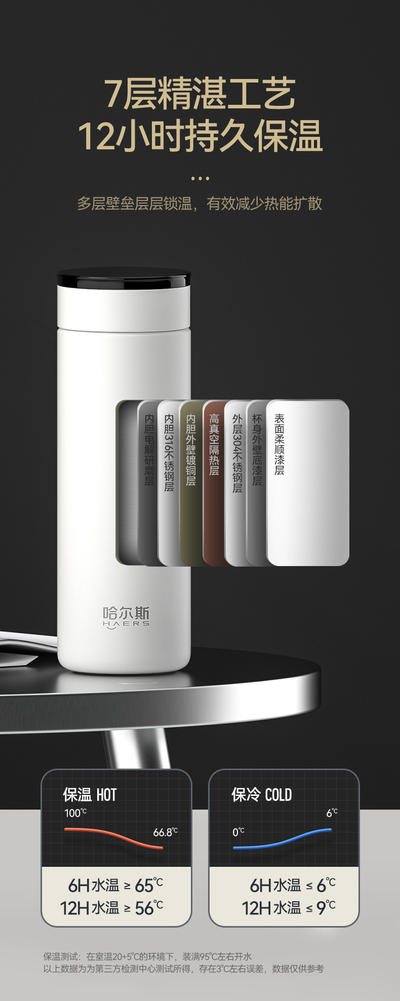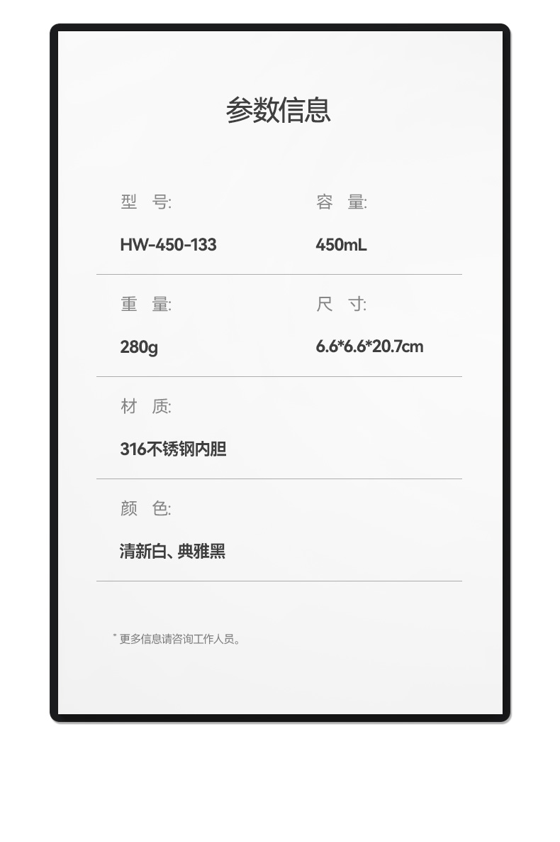 哈尔斯(HAERS)悦享保温杯450MLHW-450-133(单位:个) 白色
