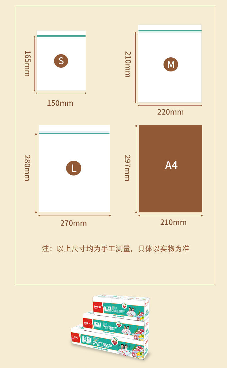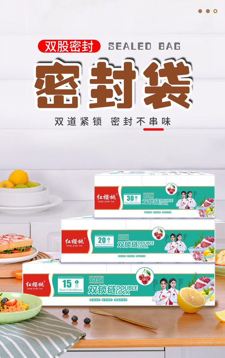 红樱桃 HYT0267 (双筋密封袋)大大大组合共45只 密封袋 透明色(单位:组)
