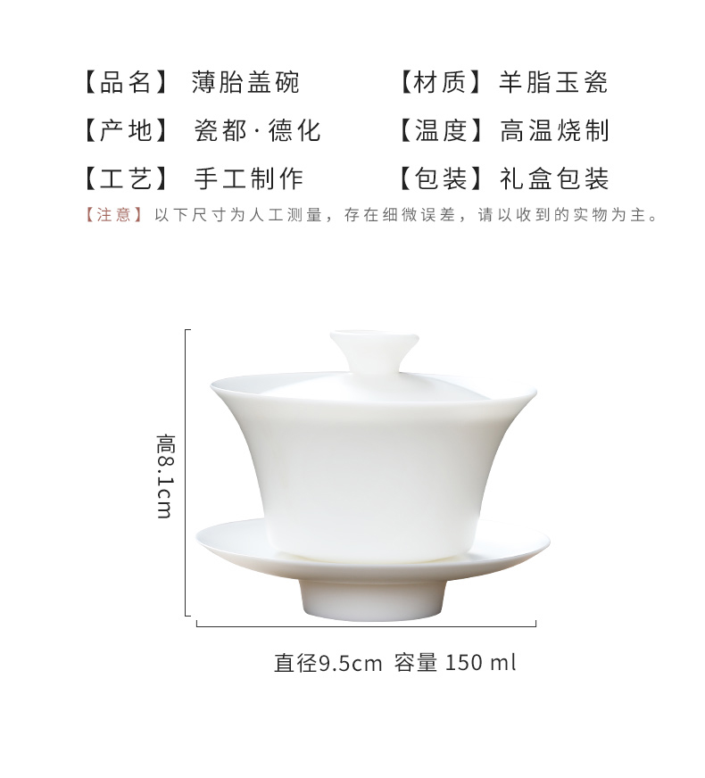 MULTIPOTENT YQ-JYJ-GW-202210-08 150ml 玉瓷薄胎三才盖碗 白色(单位:套)