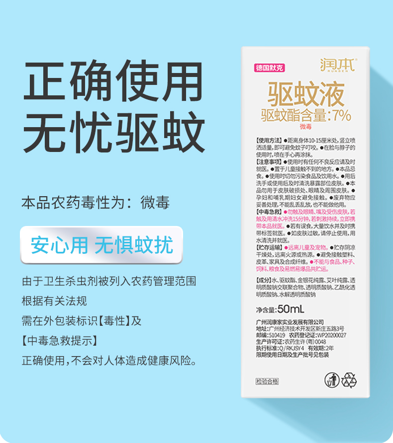 润本(RUNBEN) 驱蚊喷雾无香 50ml 7%驱蚊酯 蓝色(单位:瓶)