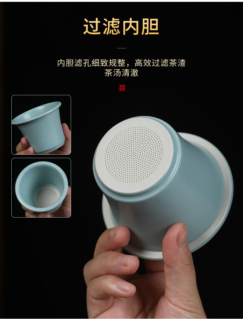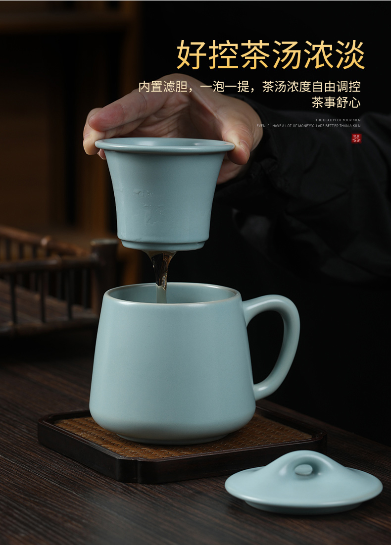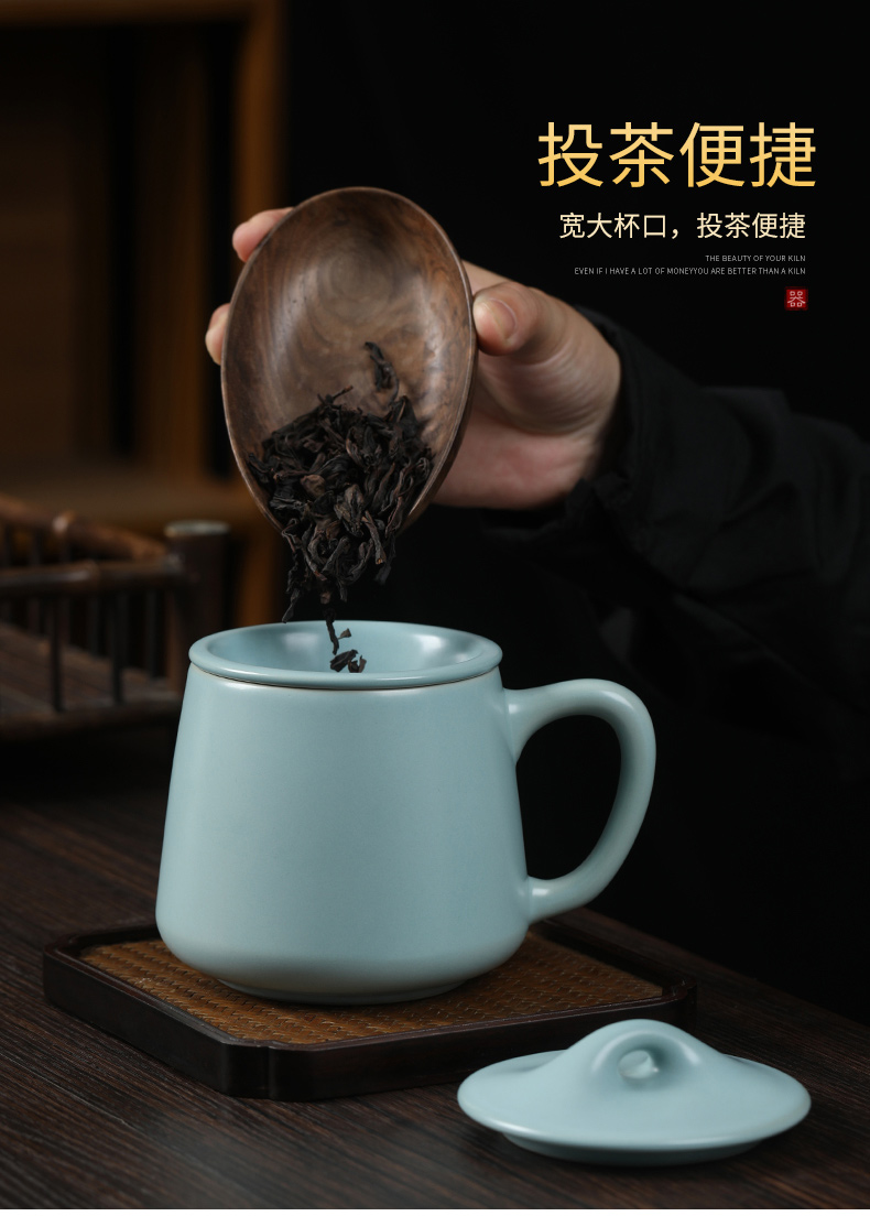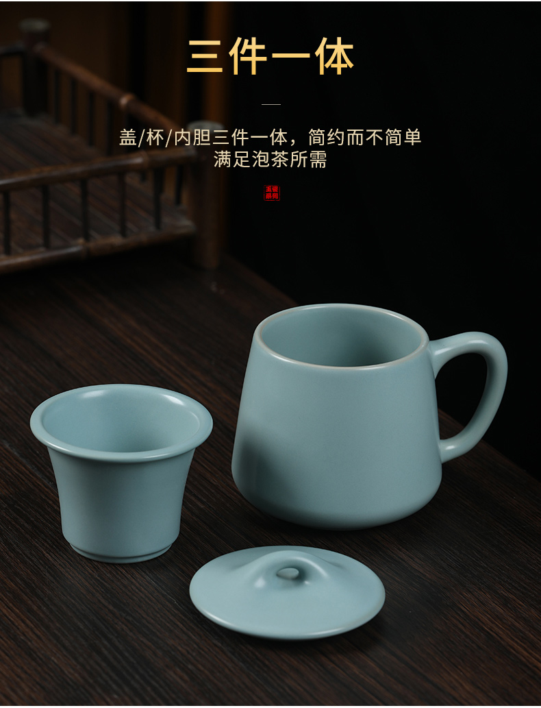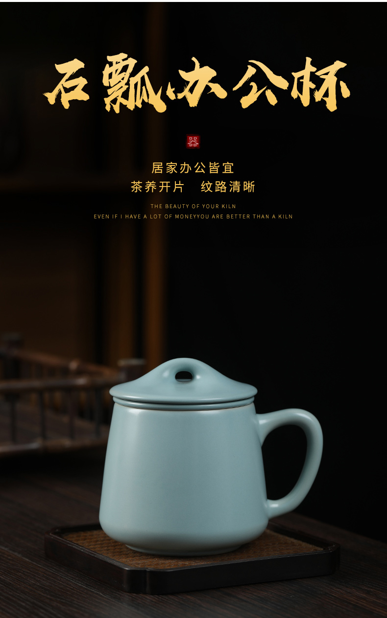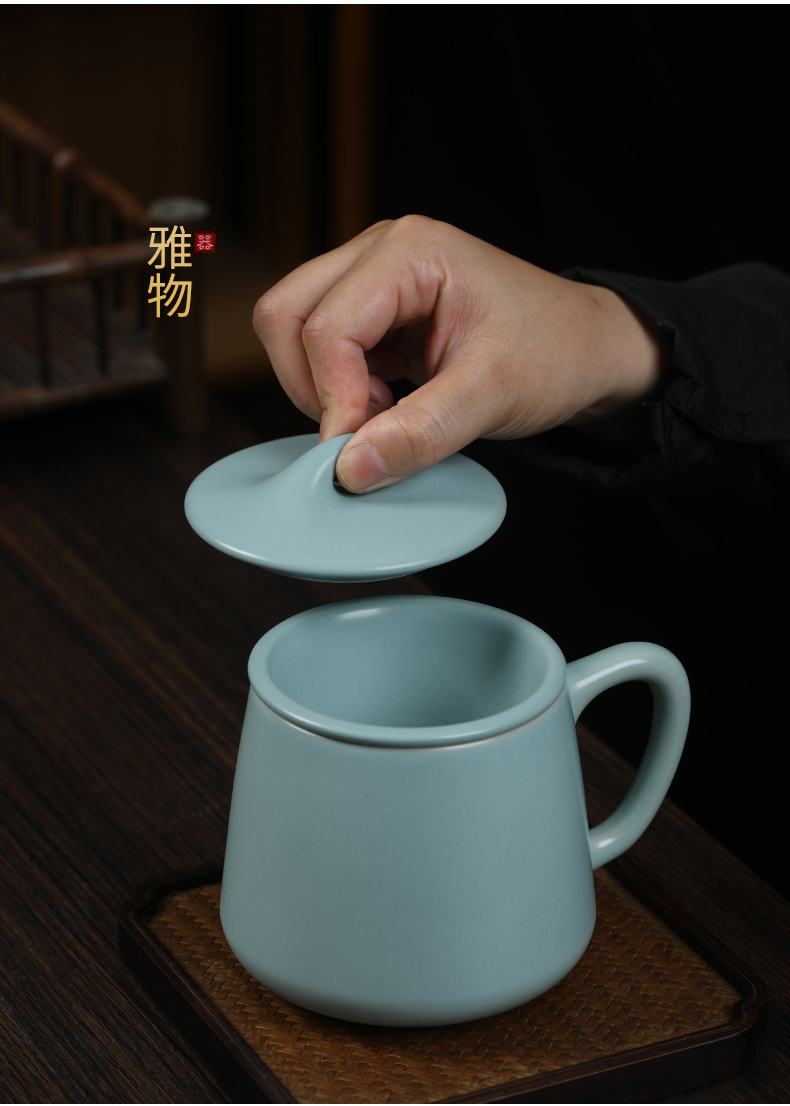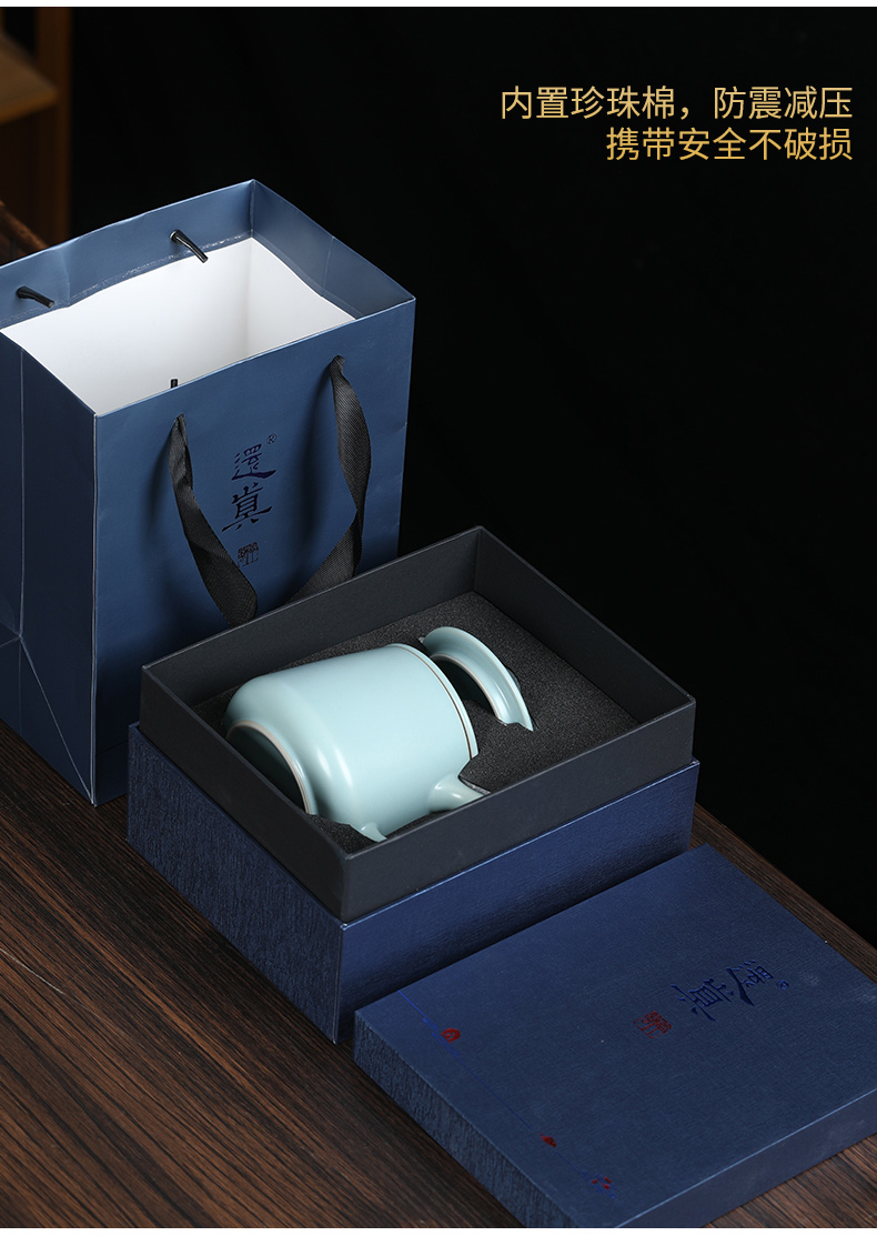MULTIPOTENT HZ-0507 450ml 汝窑石瓢办公杯礼盒装 宝石蓝(单位:套)