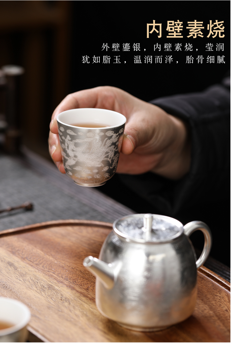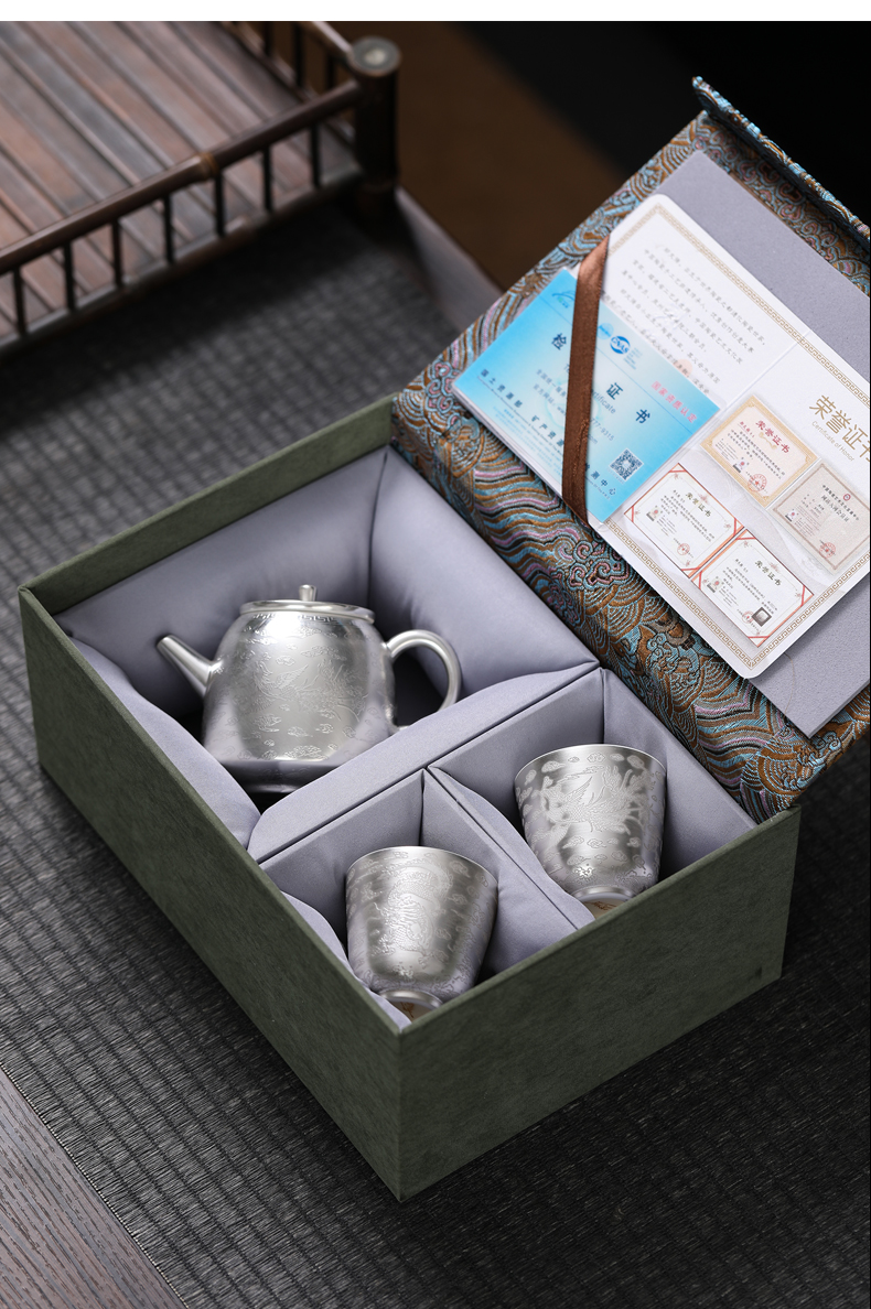 MULTIPOTENT LF-2301 3头 鎏银龙凤呈祥一壶两杯 银色(单位:套)