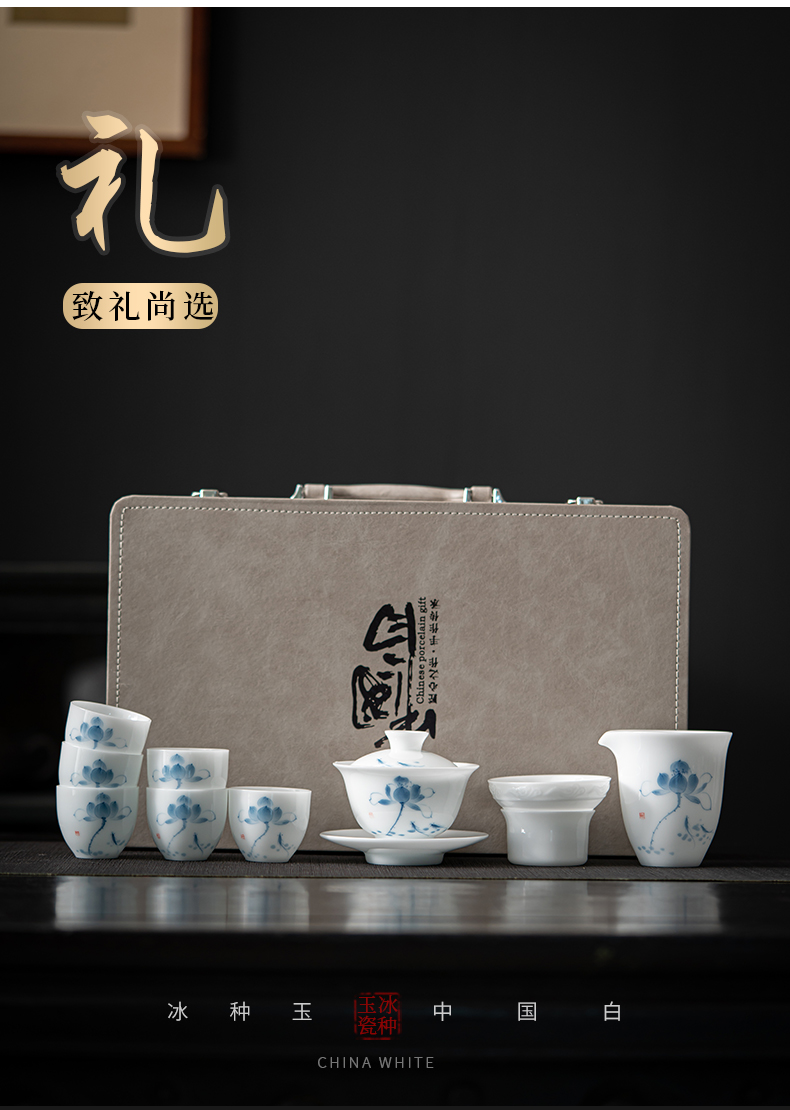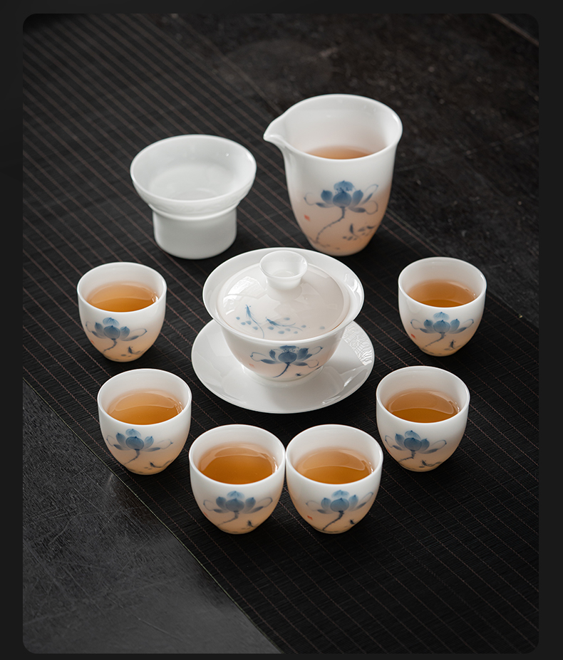 MULTIPOTENT JHY08-10 9头 手绘釉下彩冰种白瓷 白色(单位:套)