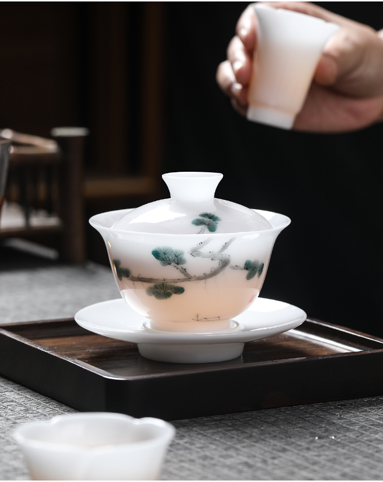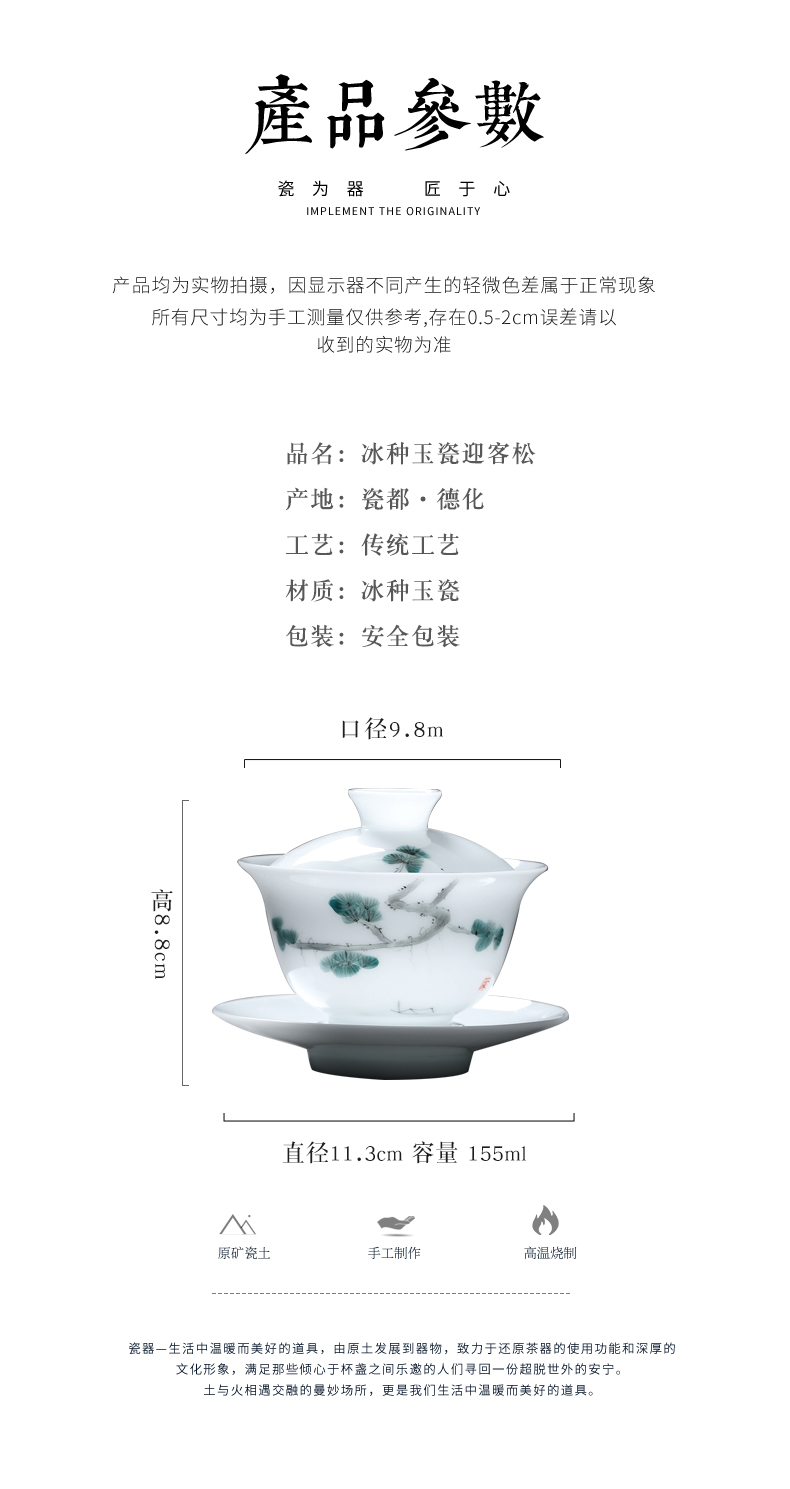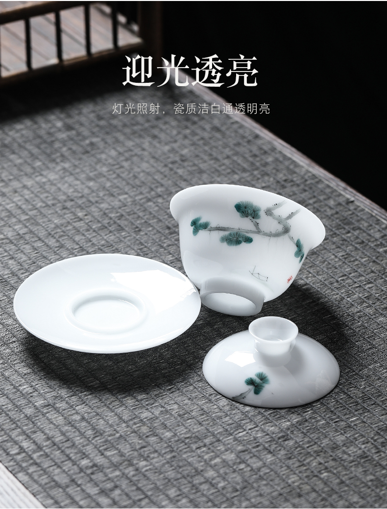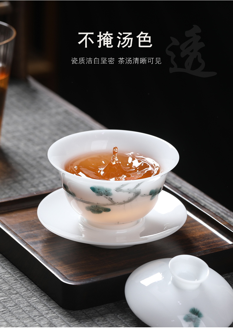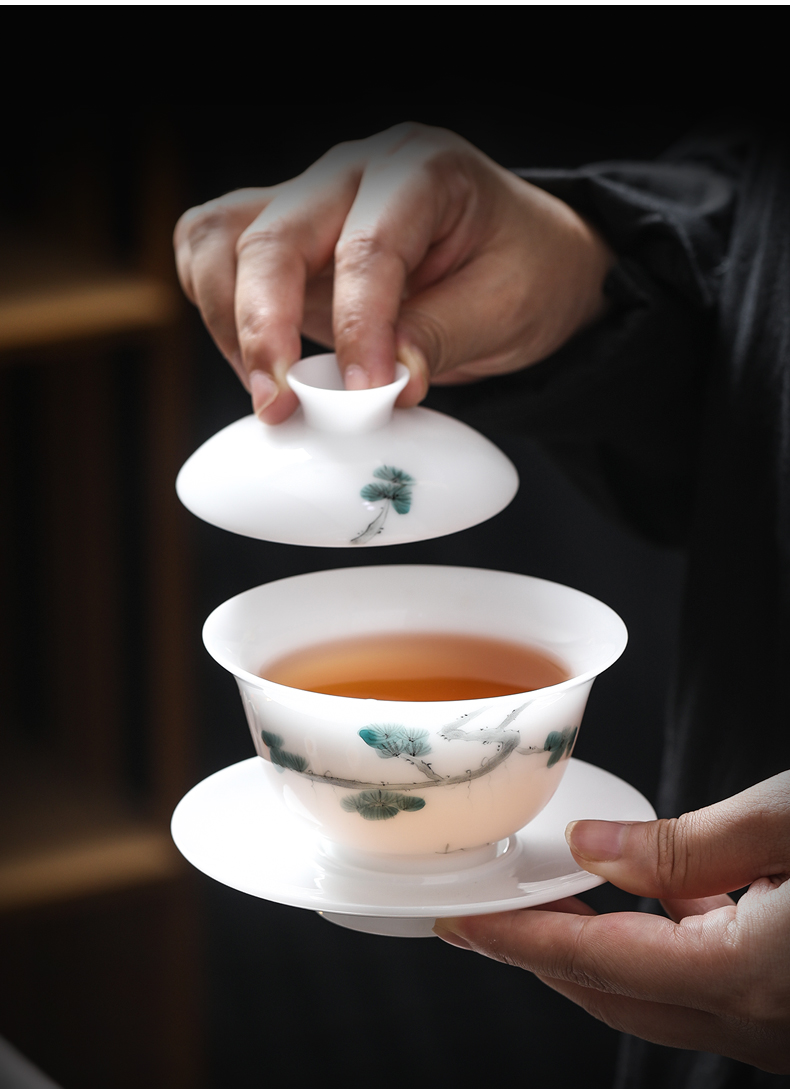 MULTIPOTENT JHY08-12 155ml 三才盖碗手绘迎客松 白色(单位:套)