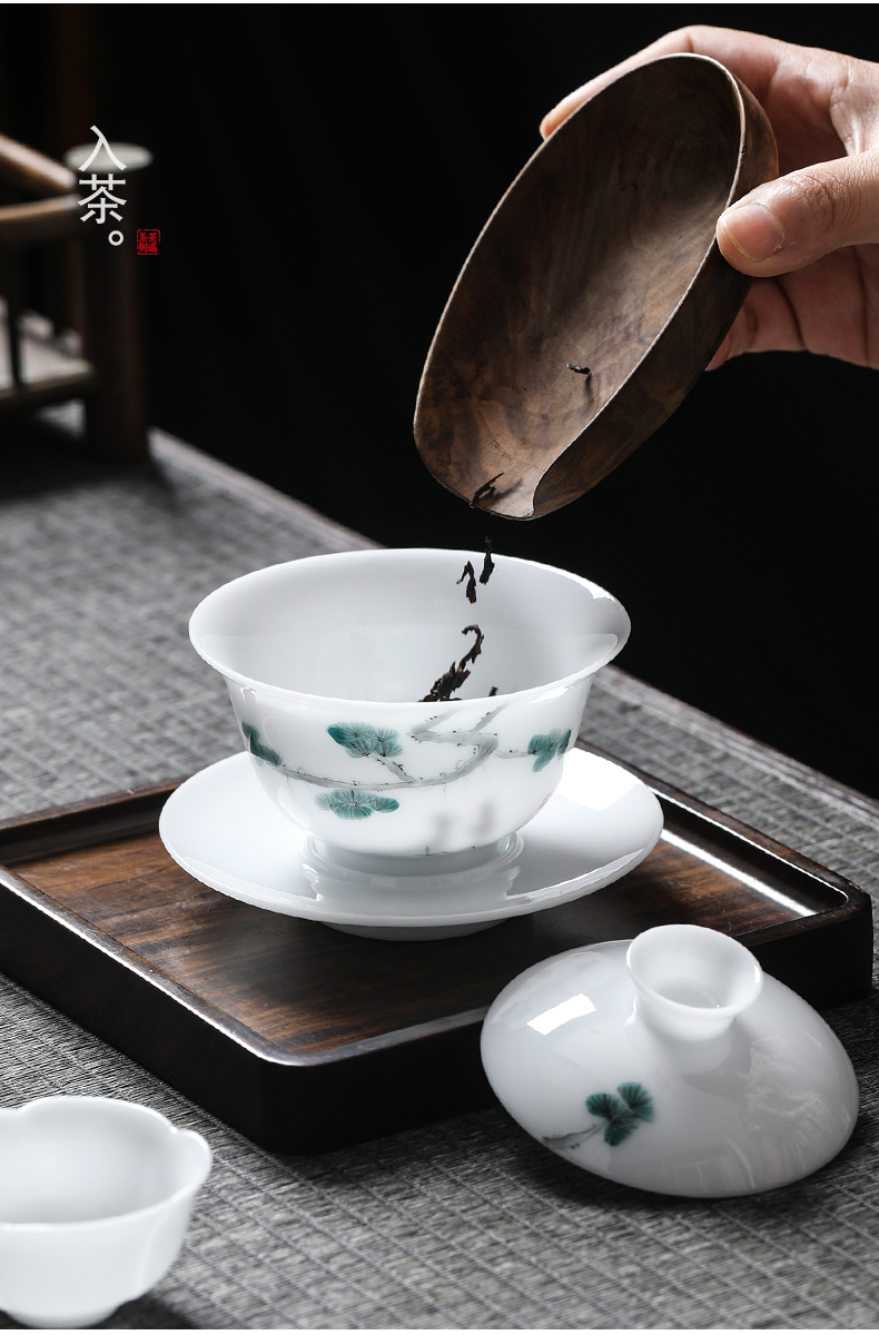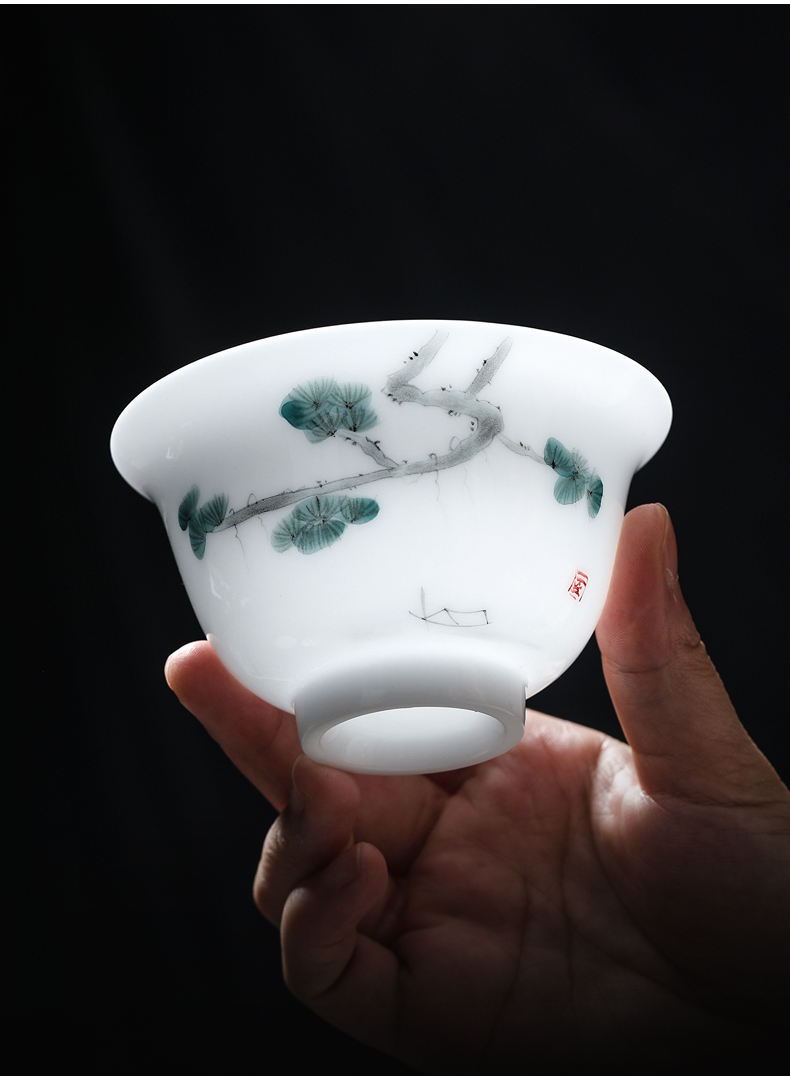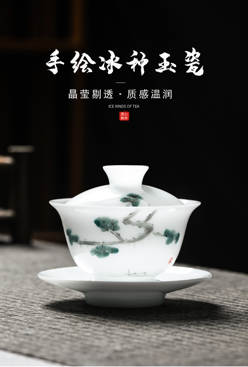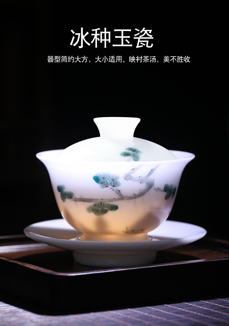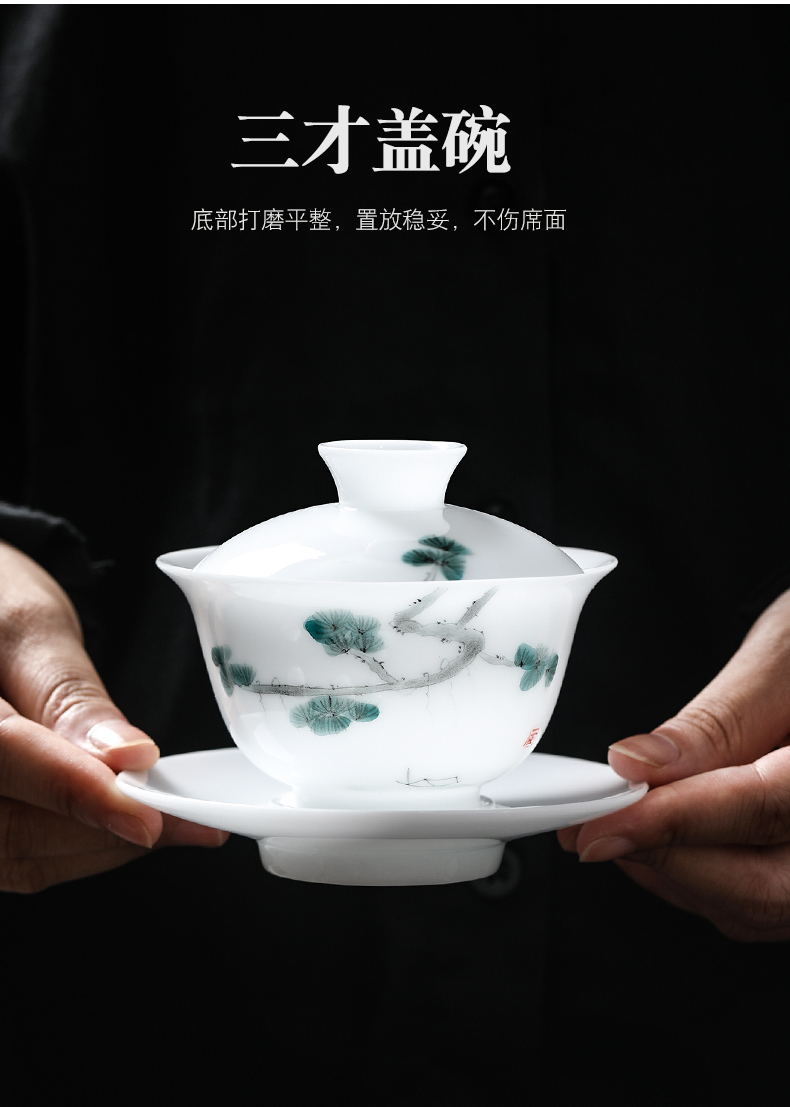 MULTIPOTENT JHY08-12 155ml 三才盖碗手绘迎客松 白色(单位:套)