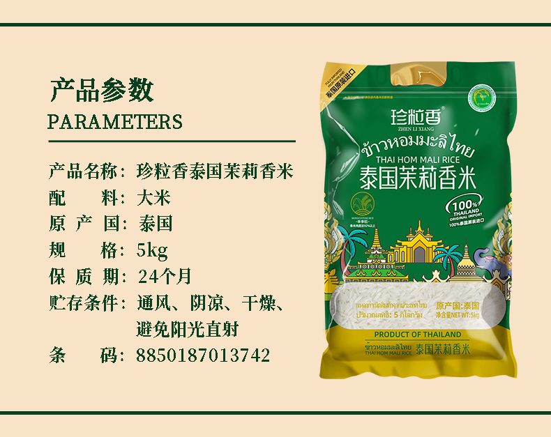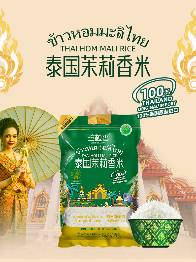 珍粒香 原装进口 5kg*1袋 泰国茉莉香米 松石绿(单位:袋)