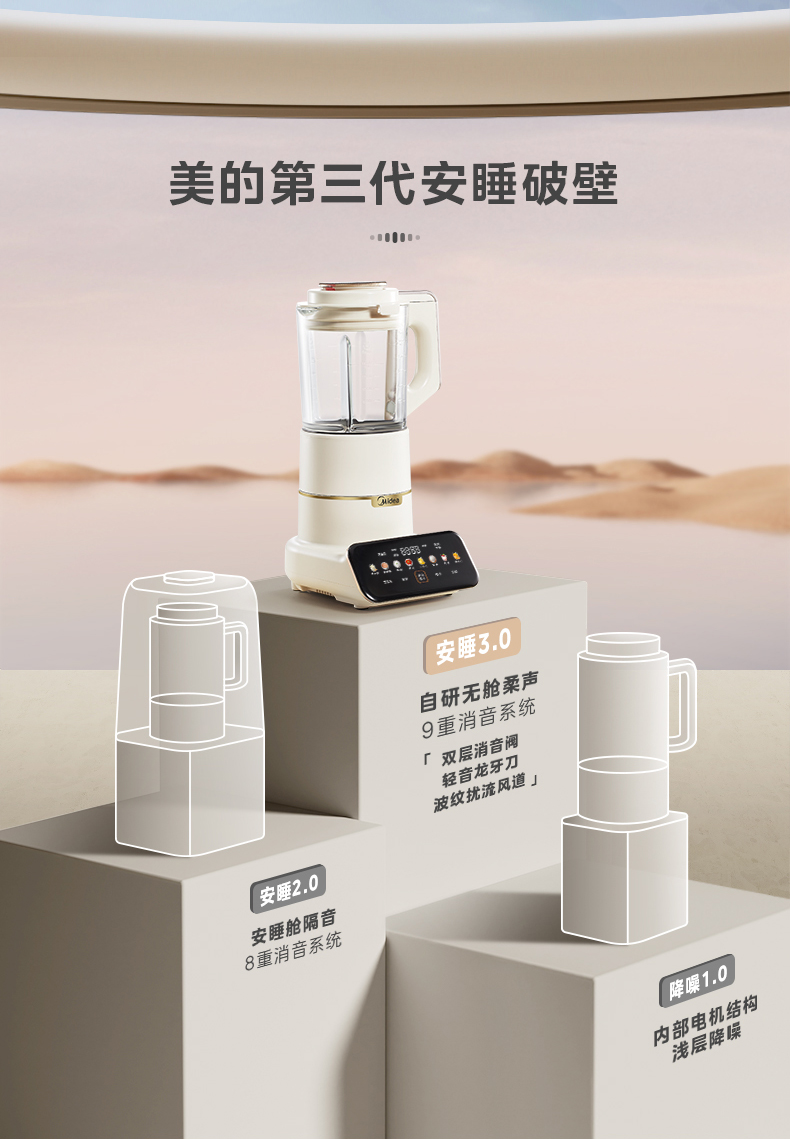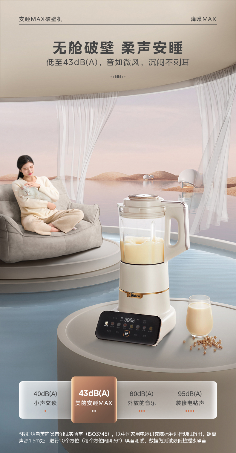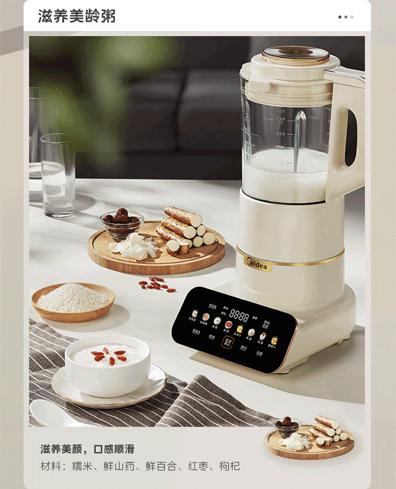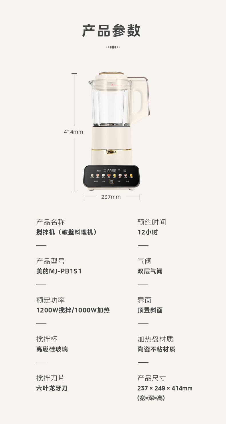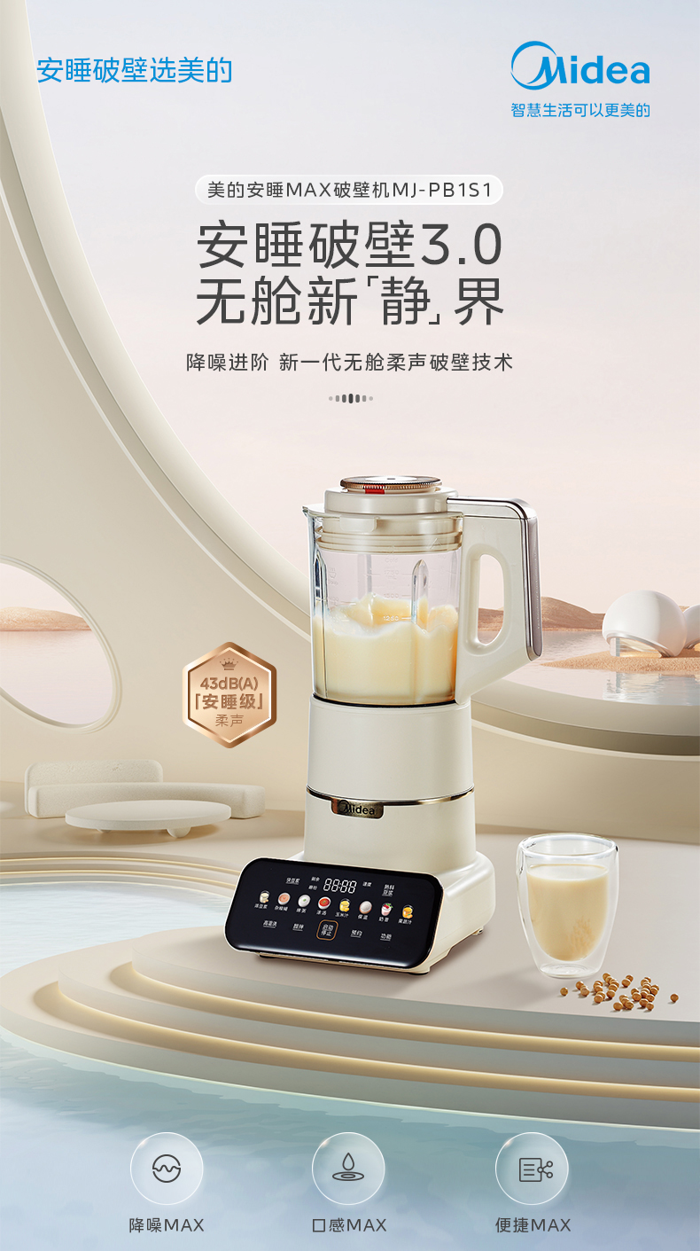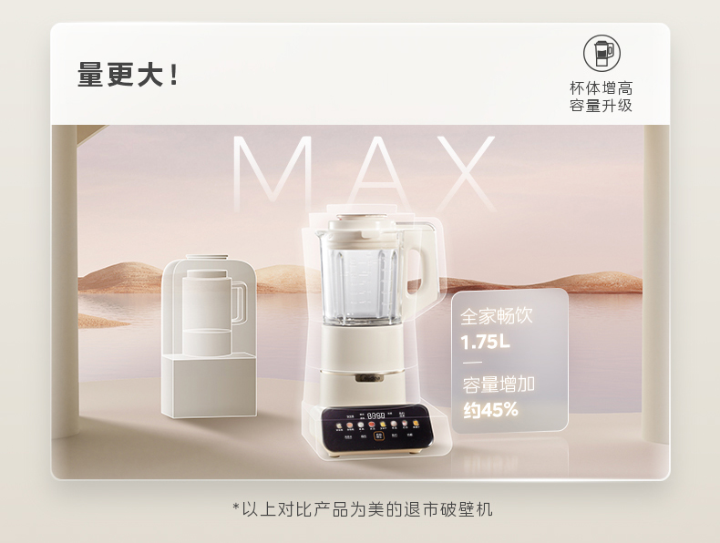 美的(Midea)破壁机 低音破壁机豆浆机家用可拆洗1.75L容量榨汁机 MJ-PB1S1(单位:台) 白色