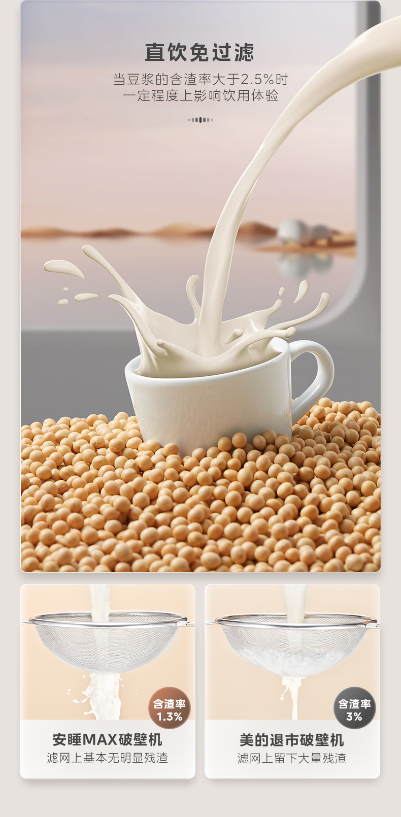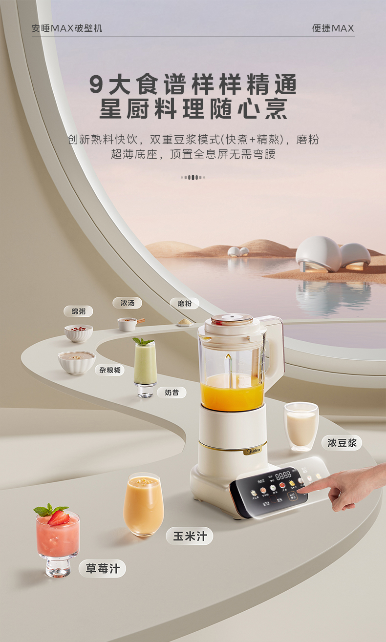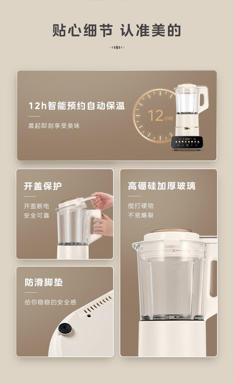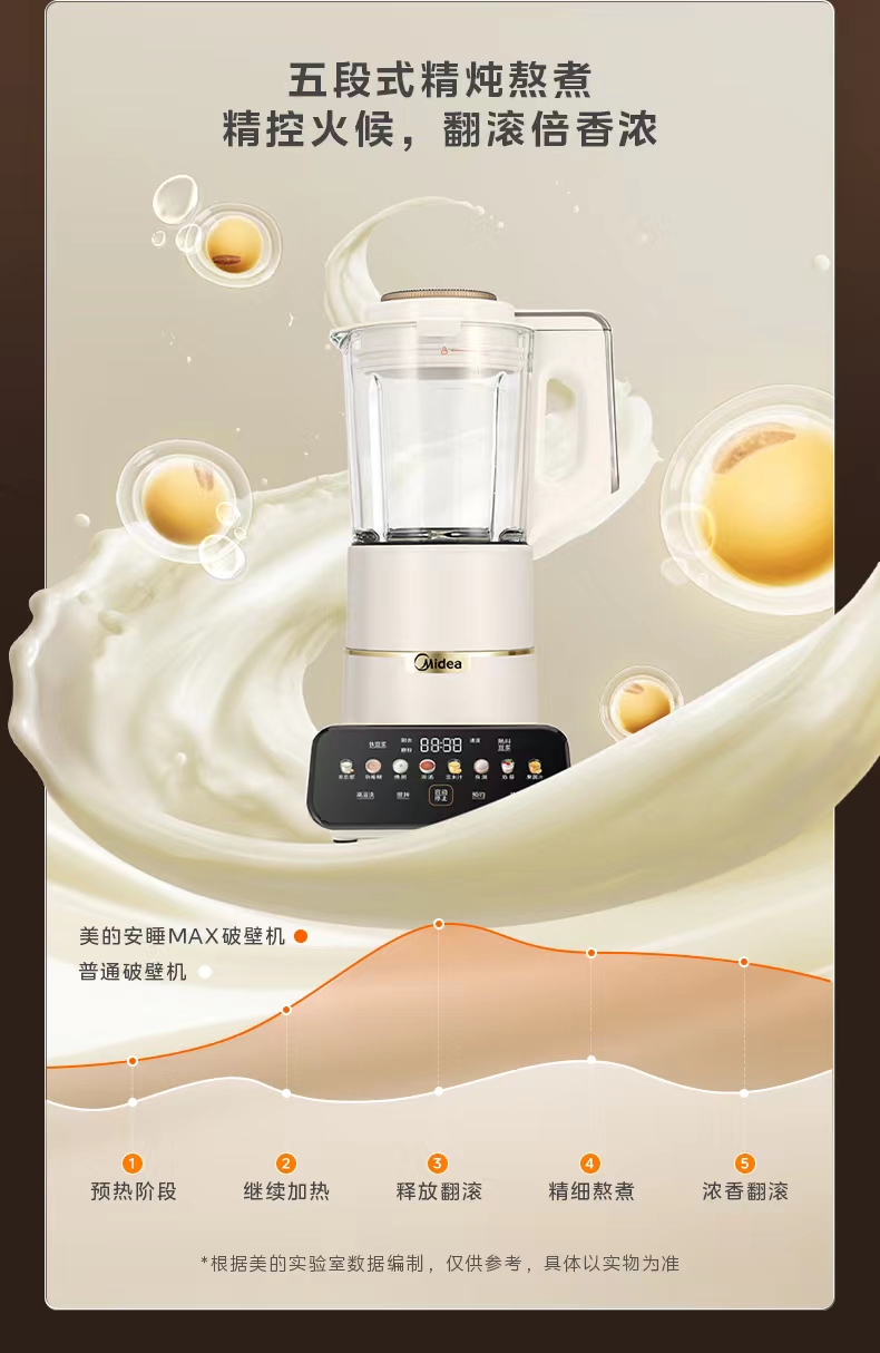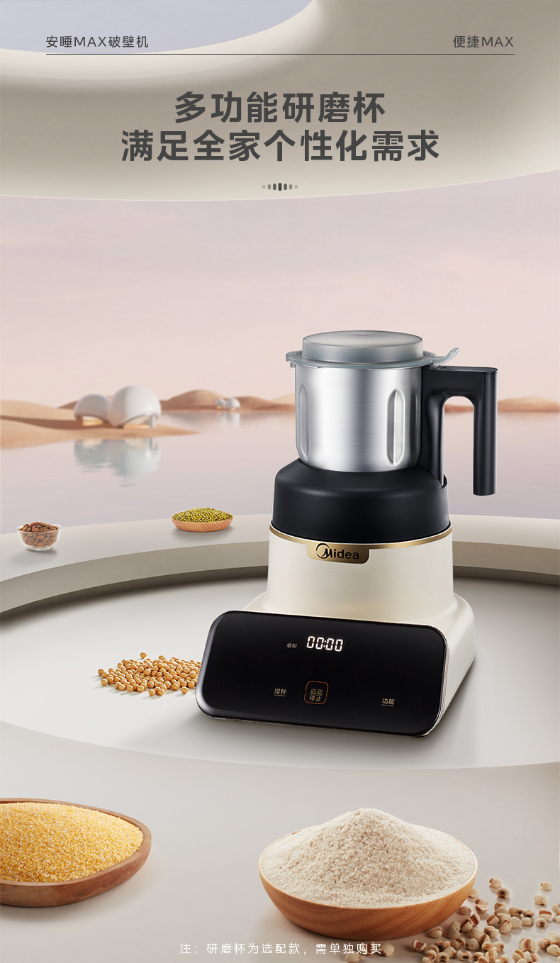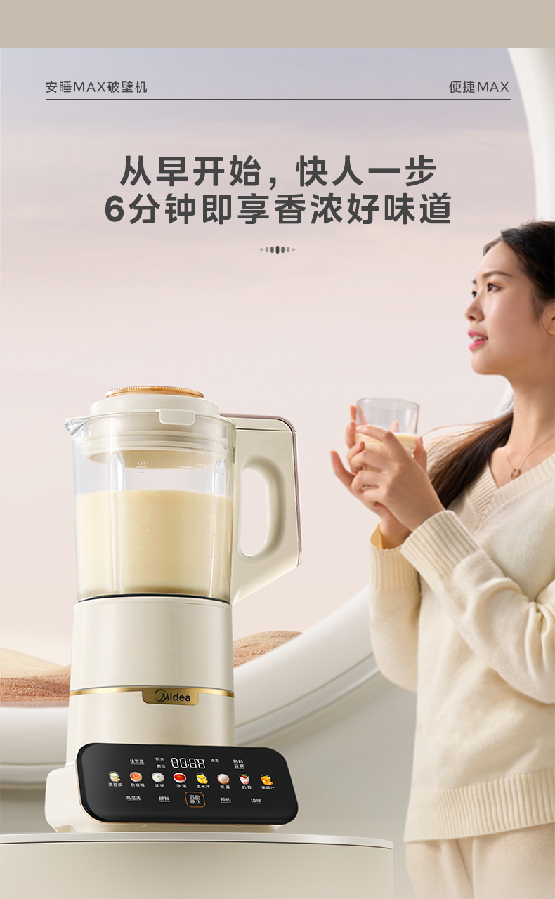 美的(Midea)破壁机 低音破壁机豆浆机家用可拆洗1.75L容量榨汁机 MJ-PB1S1(单位:台) 白色