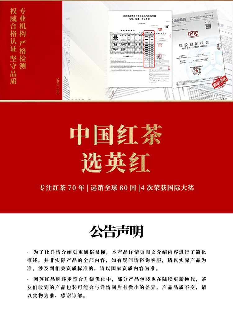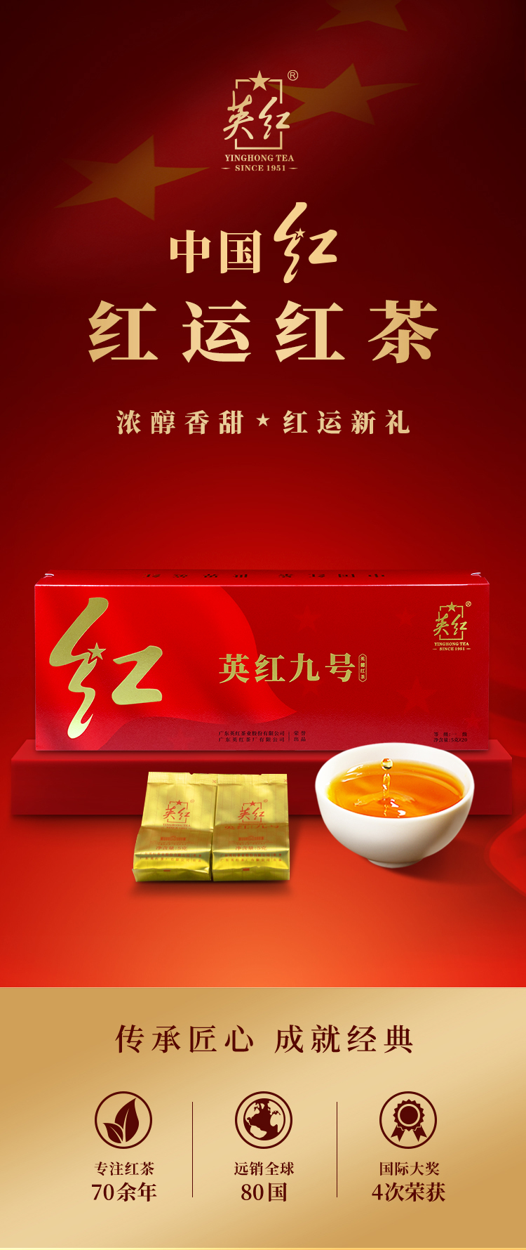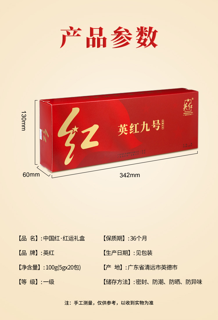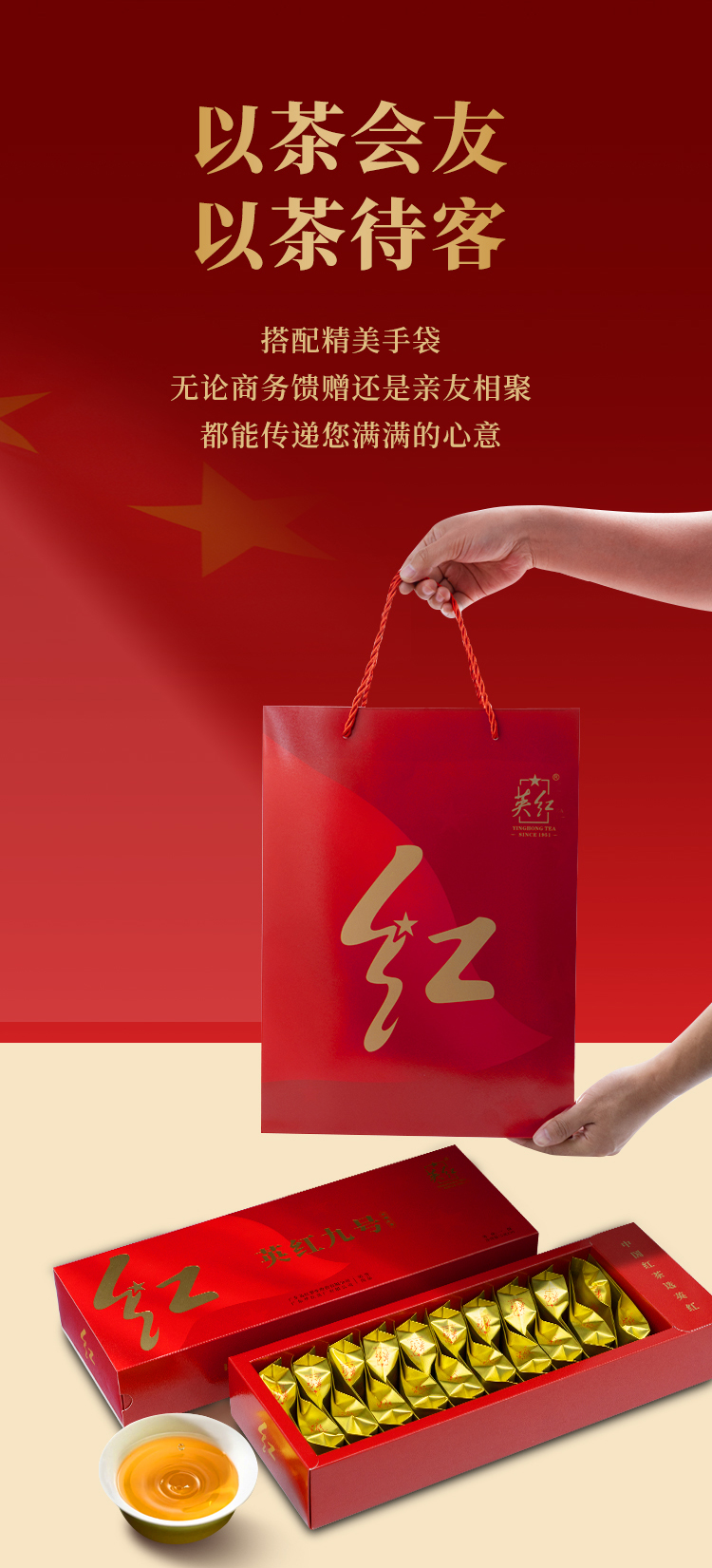英红 红运礼盒 一级茶叶 100克(5克*20泡/盒) 红色