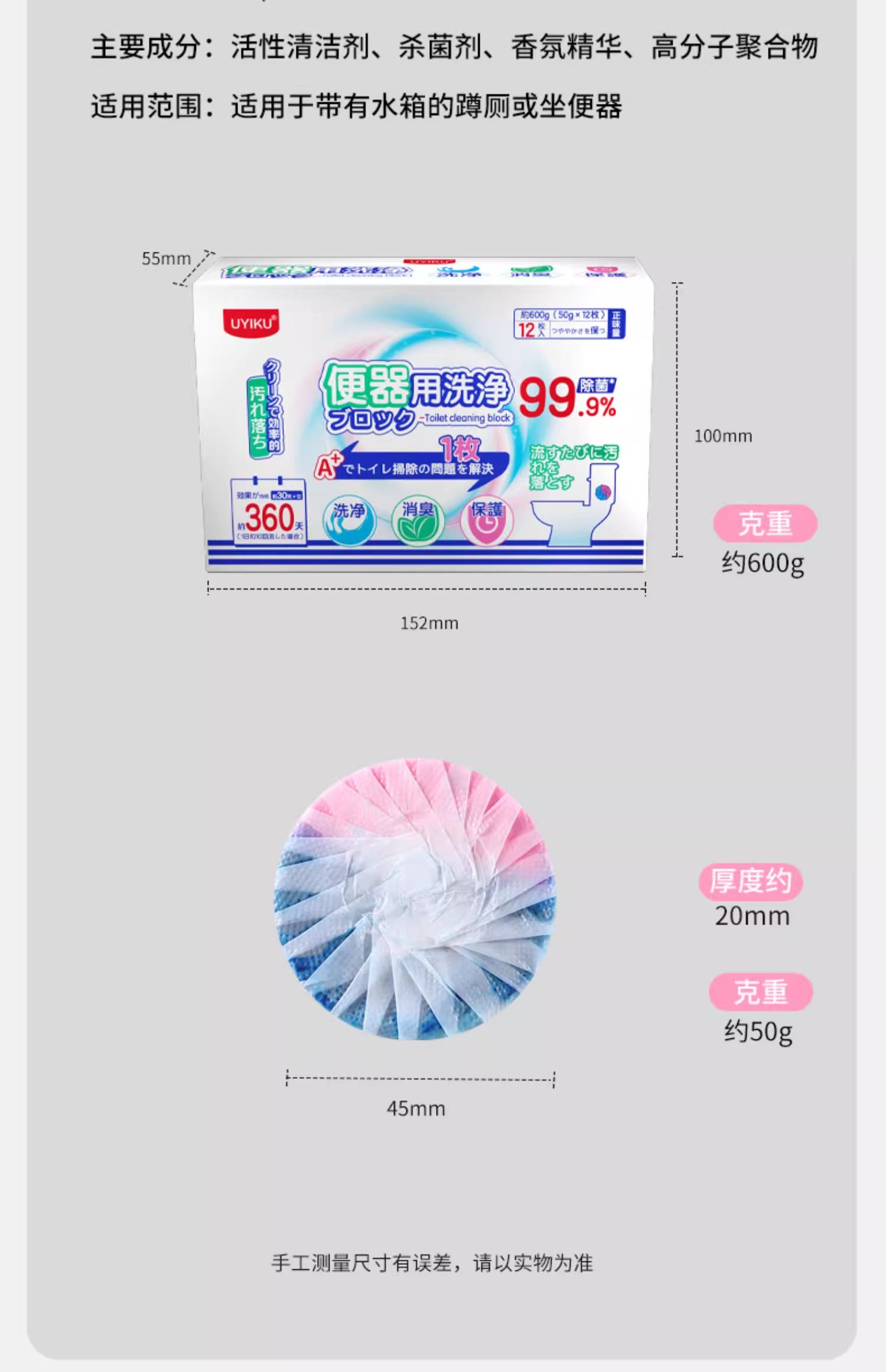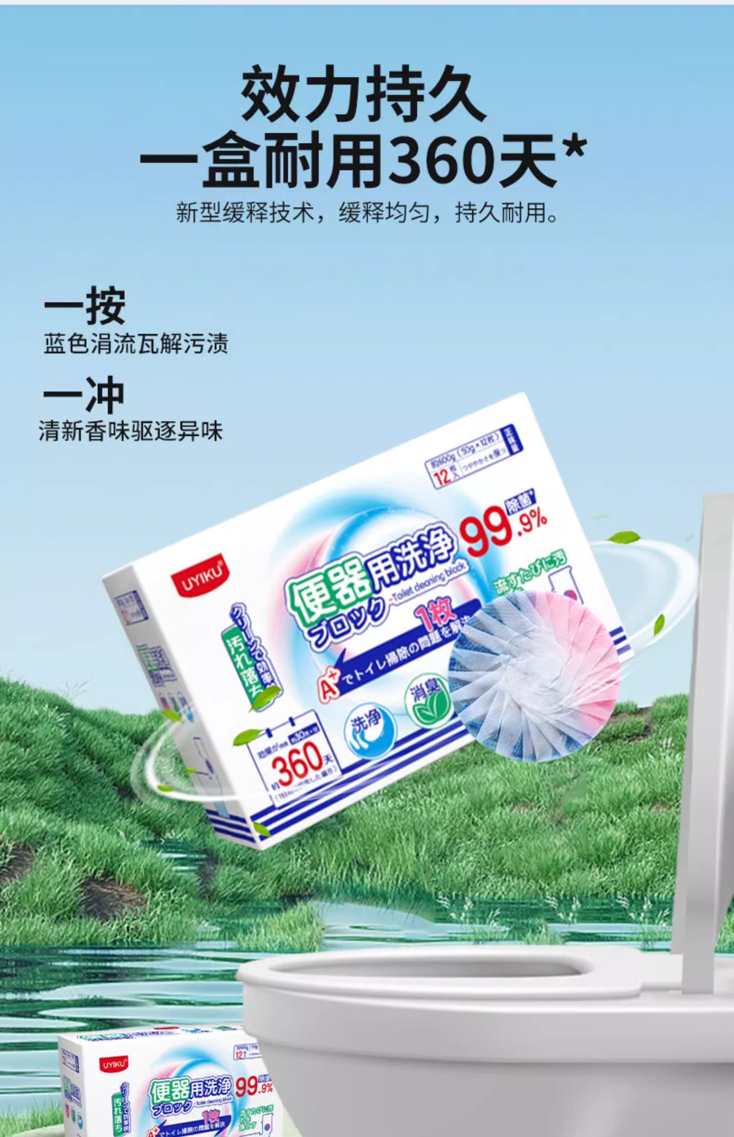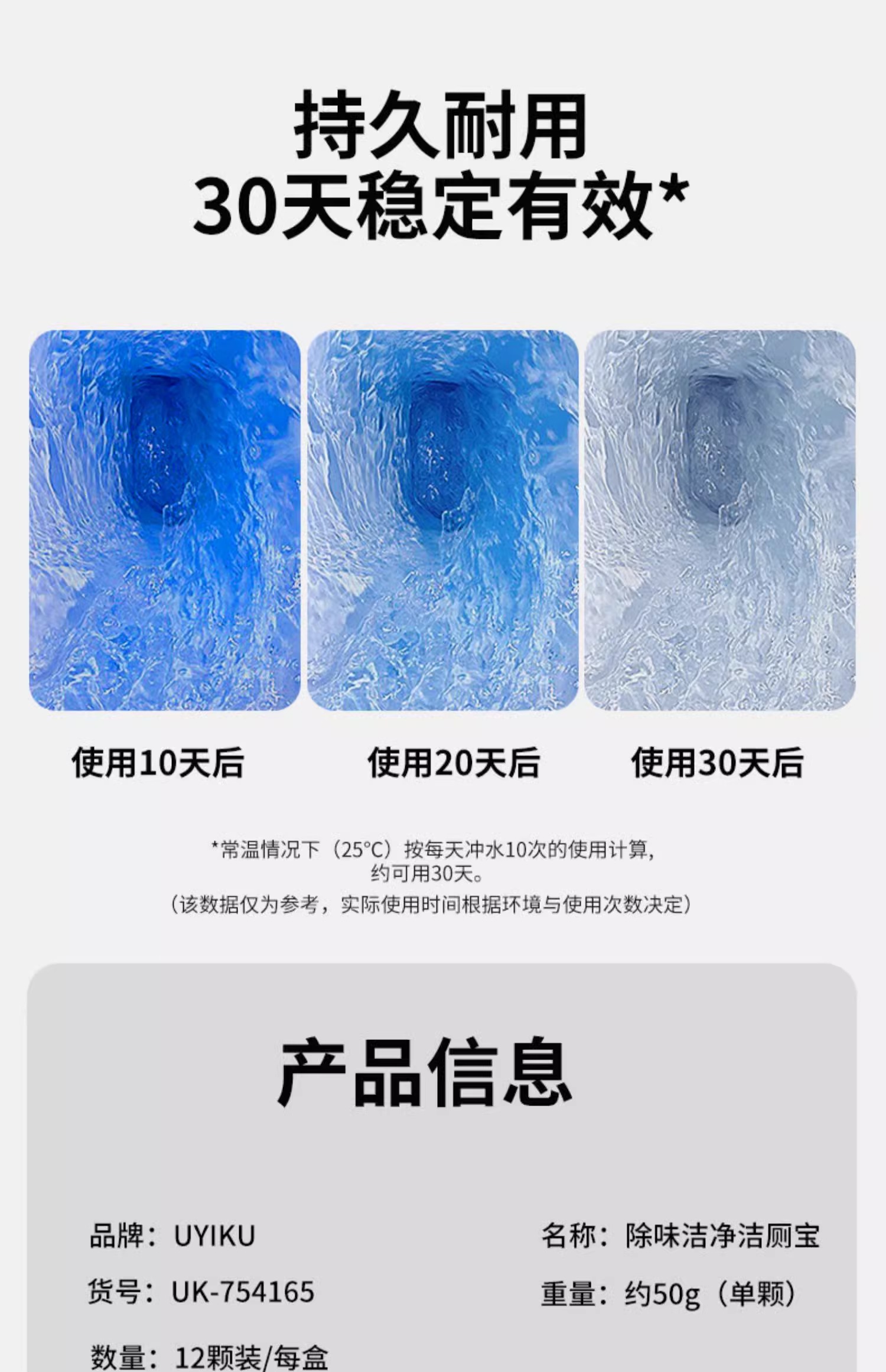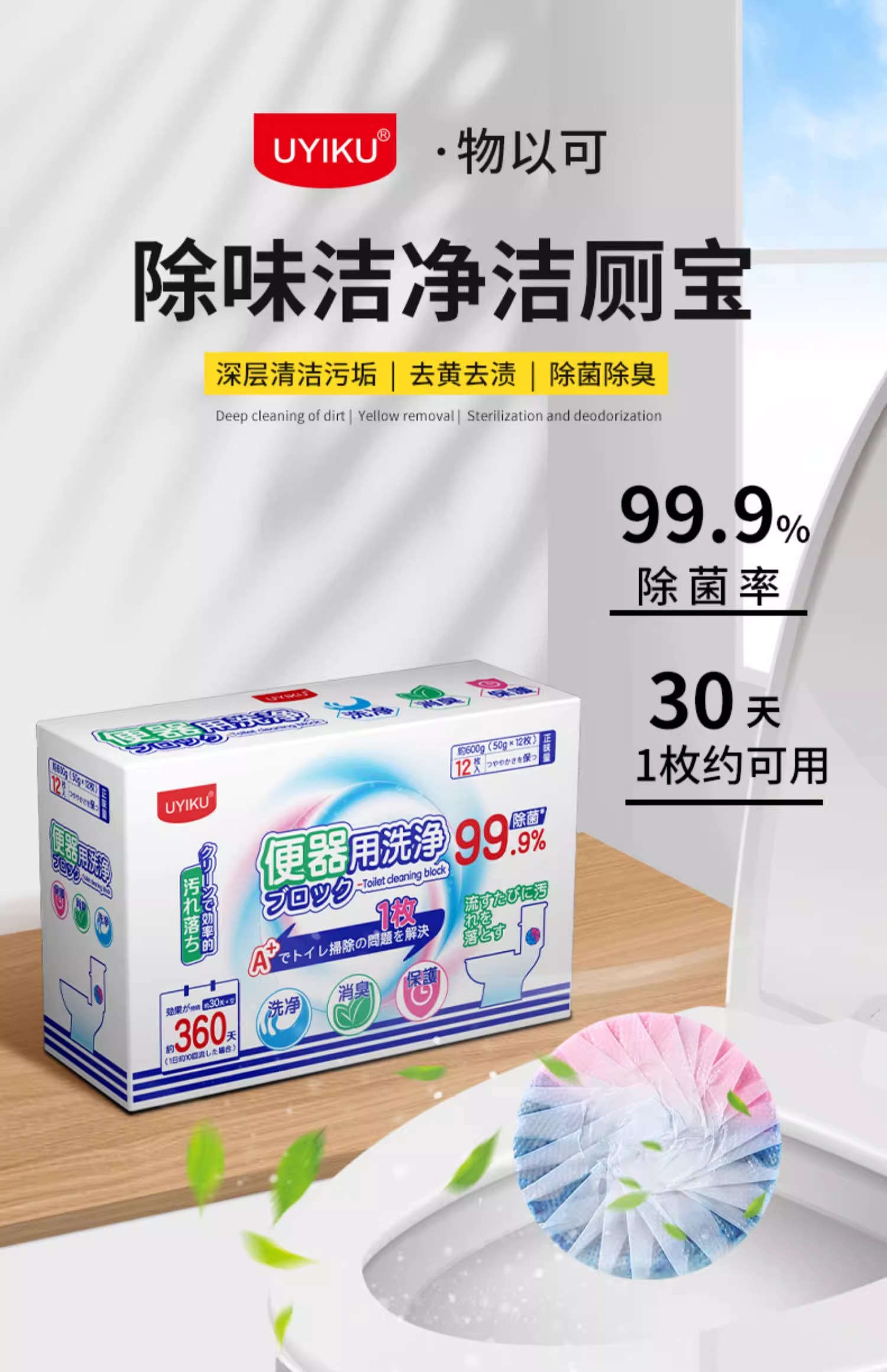 UYIKU物以可马桶洁厕灵花香洁厕宝泡泡除臭神器去异味厕所强力除垢去污渍12枚/1盒(单位:盒) 混色