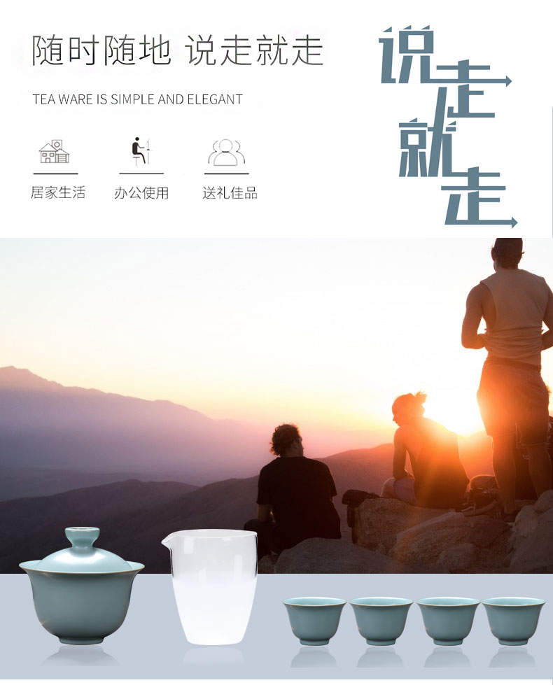 MULTIPOTENT YQ-YXHZ-ZTCJ-202201-06 6头 汝窑开片可养旅行茶具 水蓝色(单位:套)
