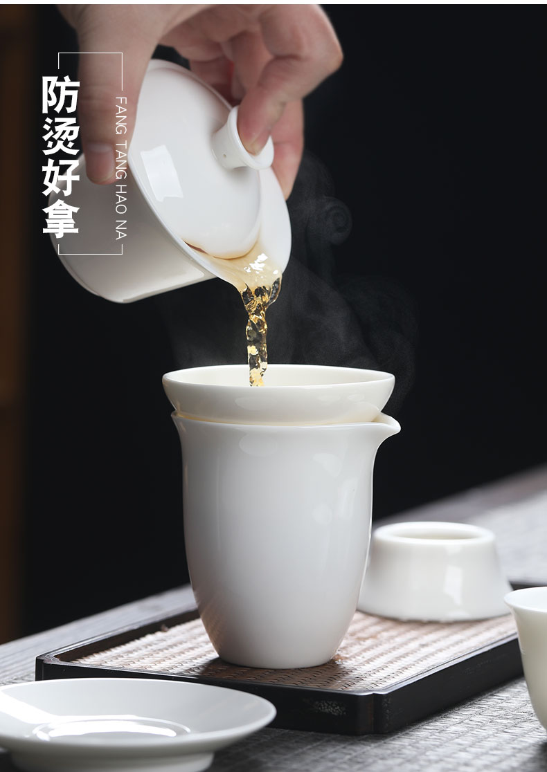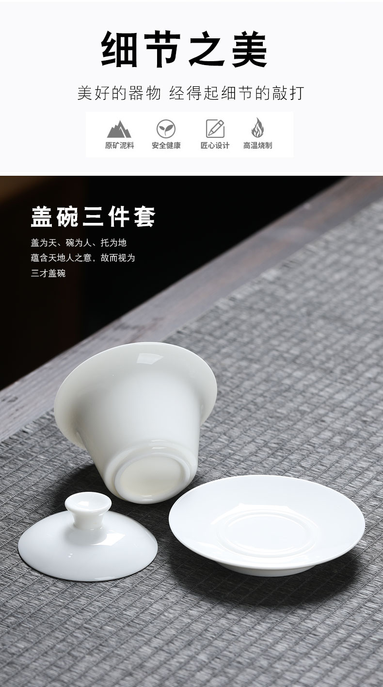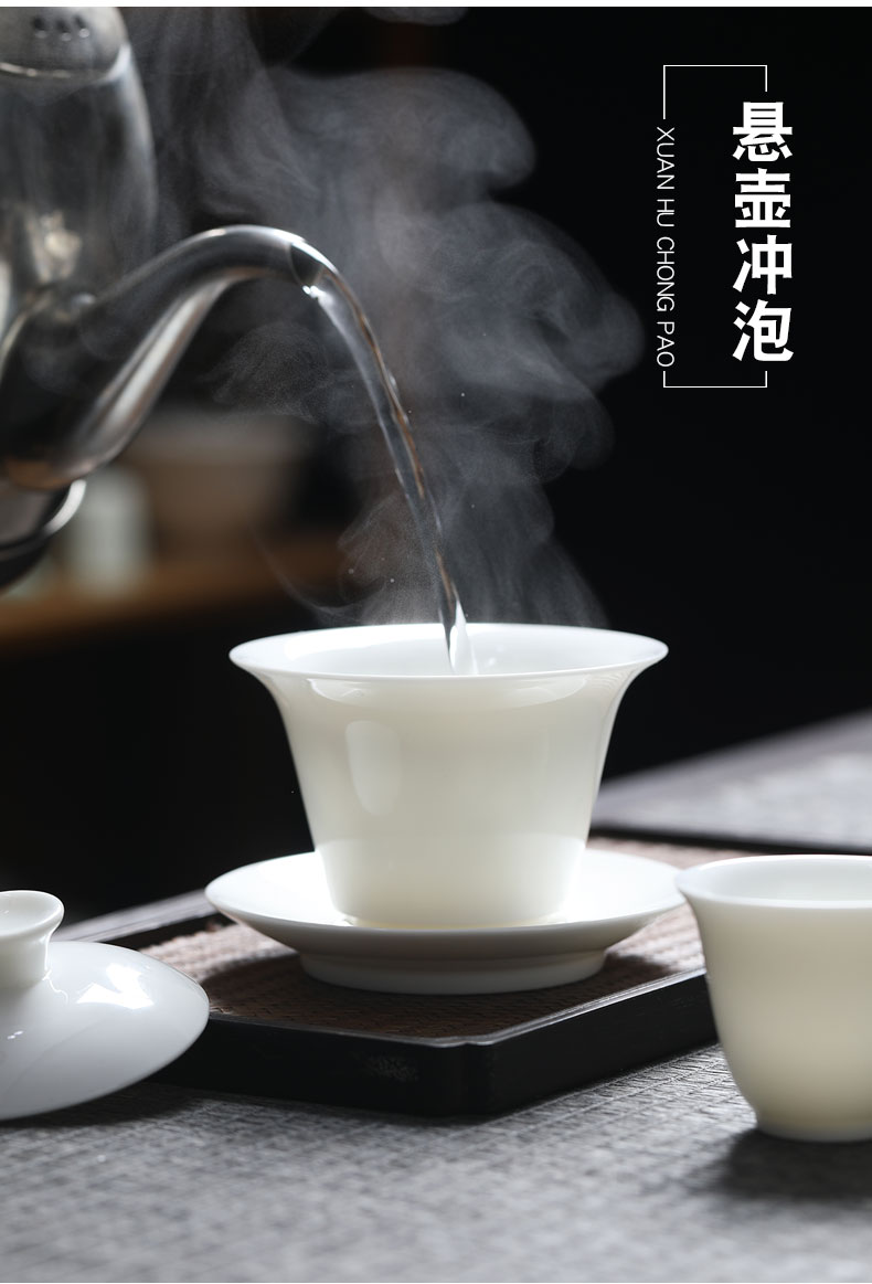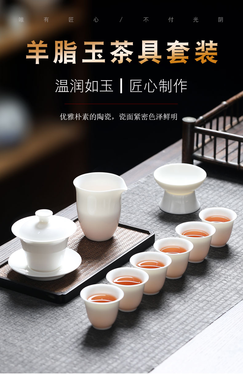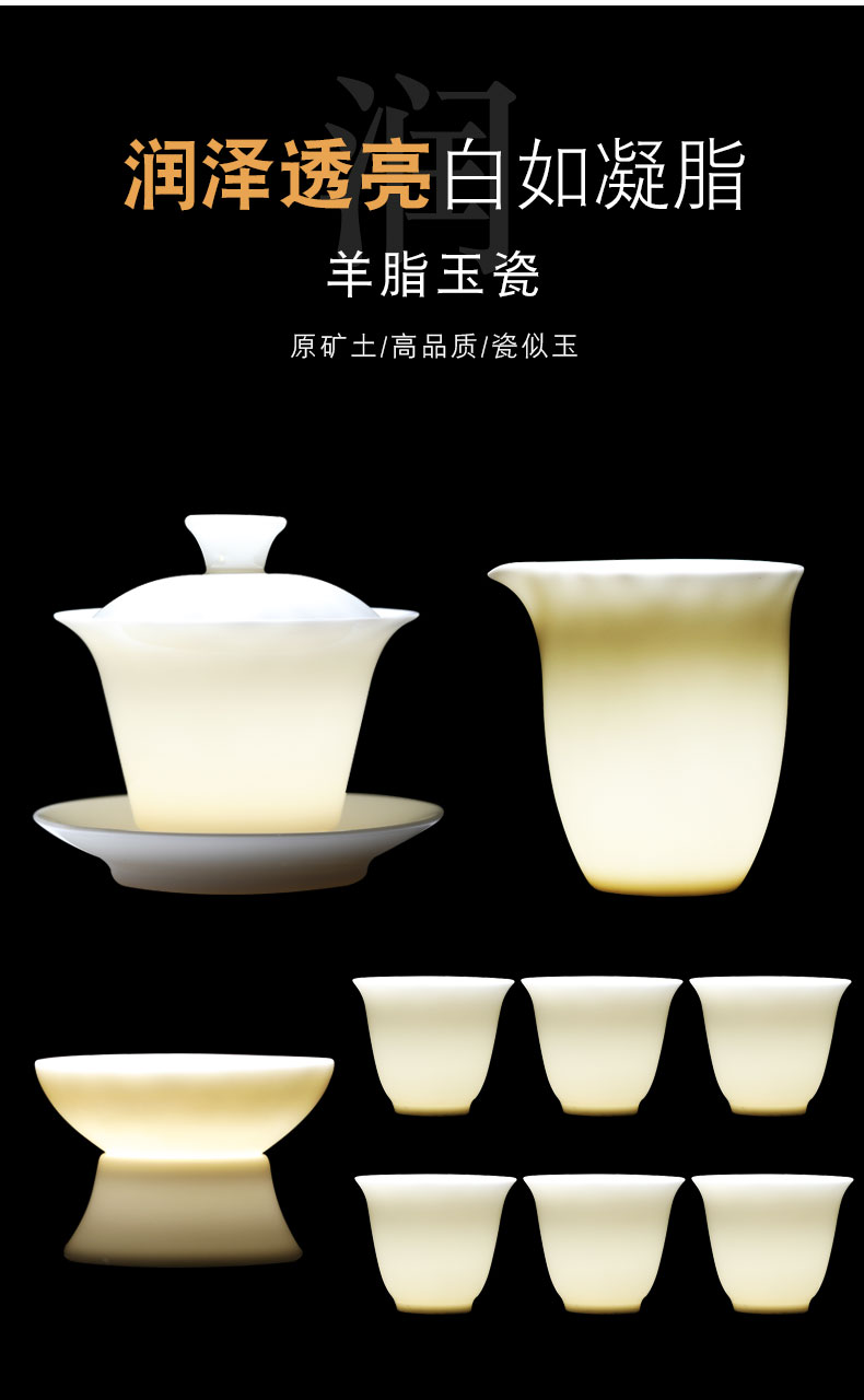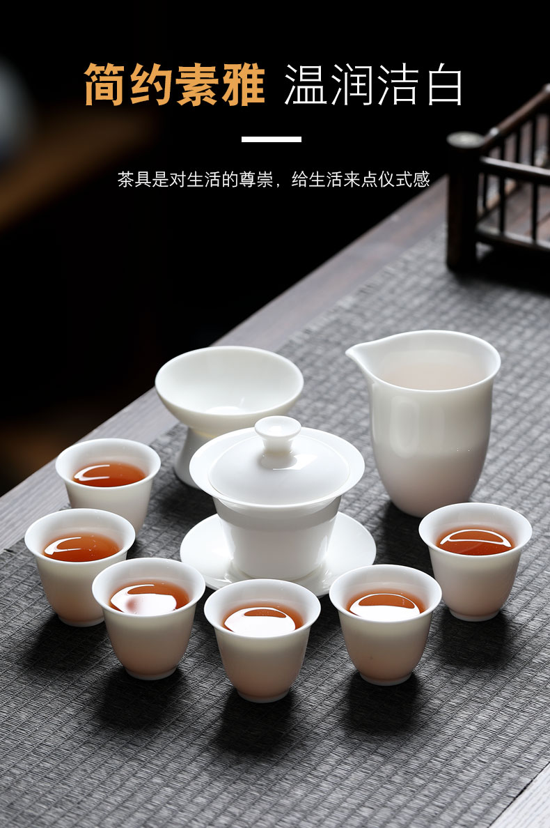 MULTIPOTENT YQ-LQB-ZTCJ-202111-01 9头 白瓷盖碗茶杯整套茶具 白色(单位:套)
