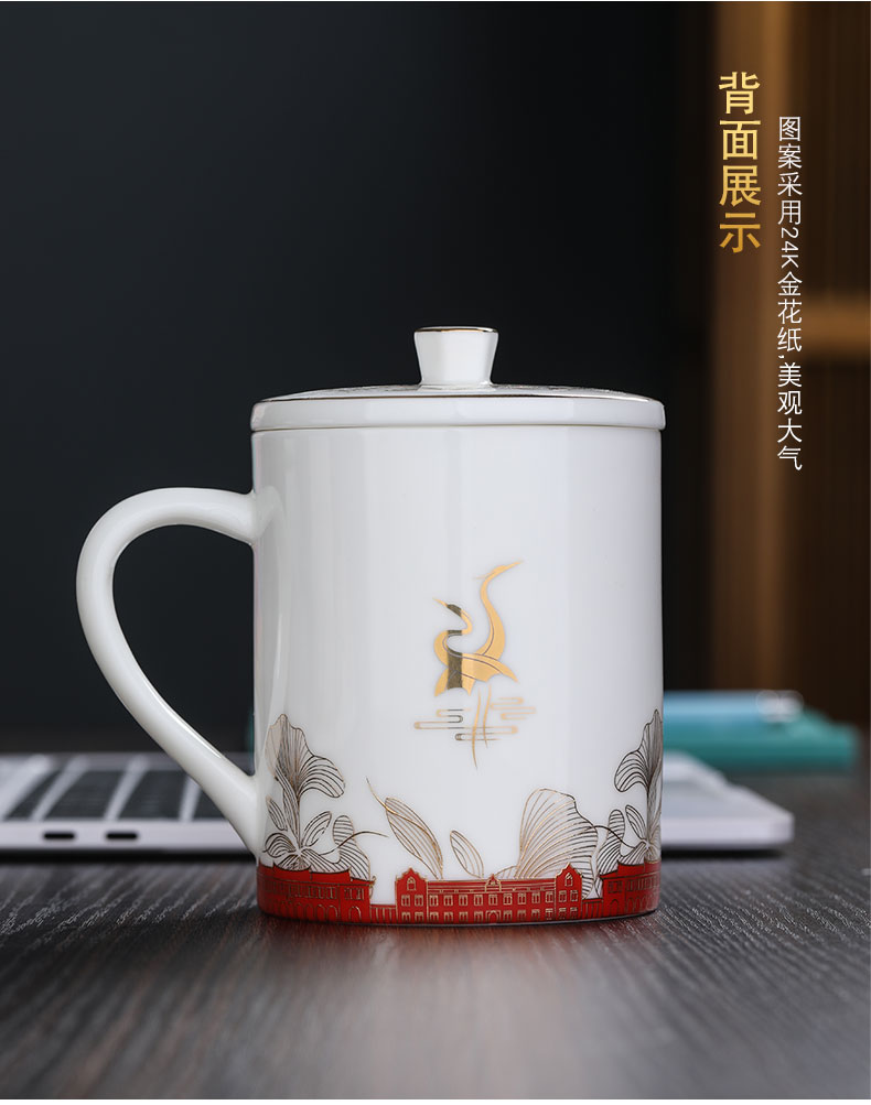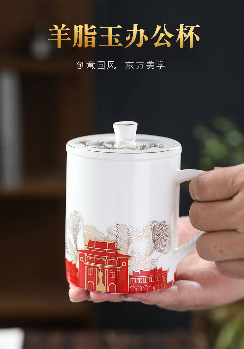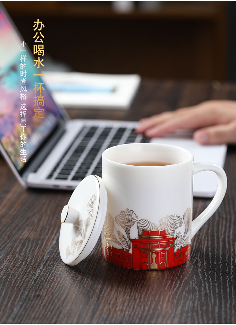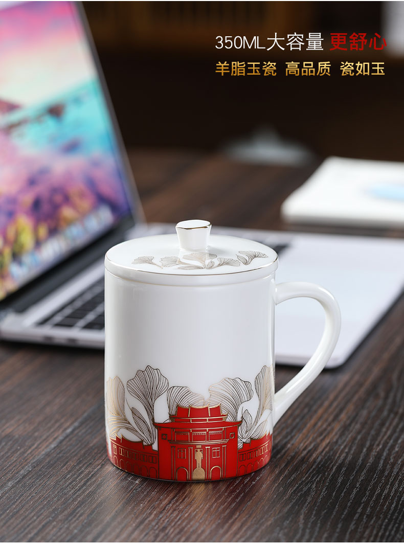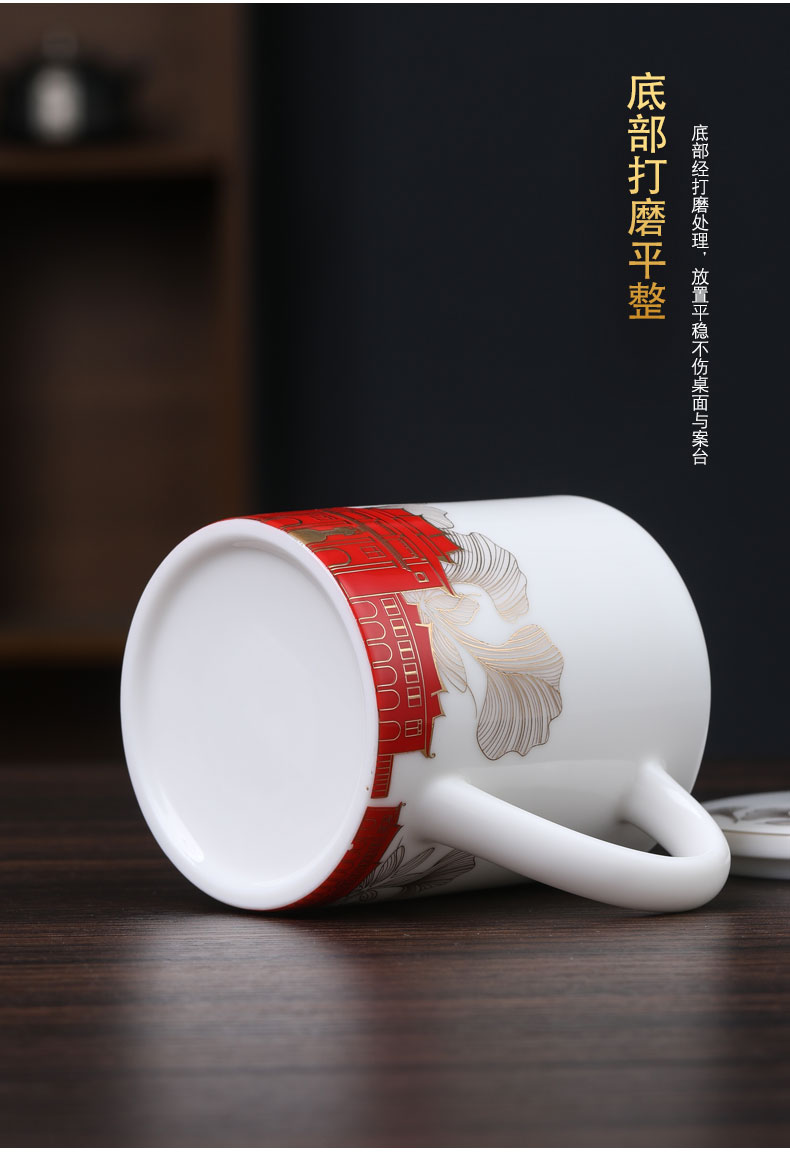 MULTIPOTENT YQ-CJF-CB-202111-04 350ml 中国风陶瓷带盖办公杯 白色(单位:套)