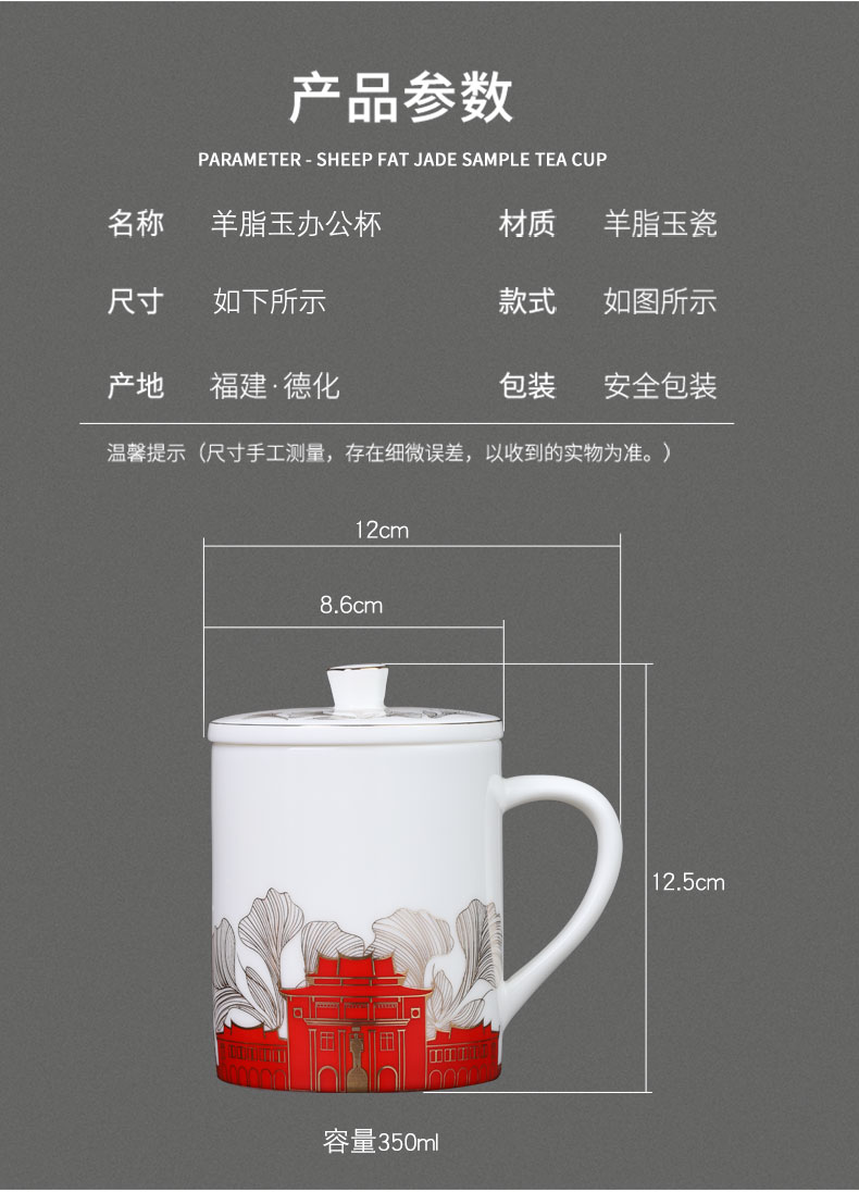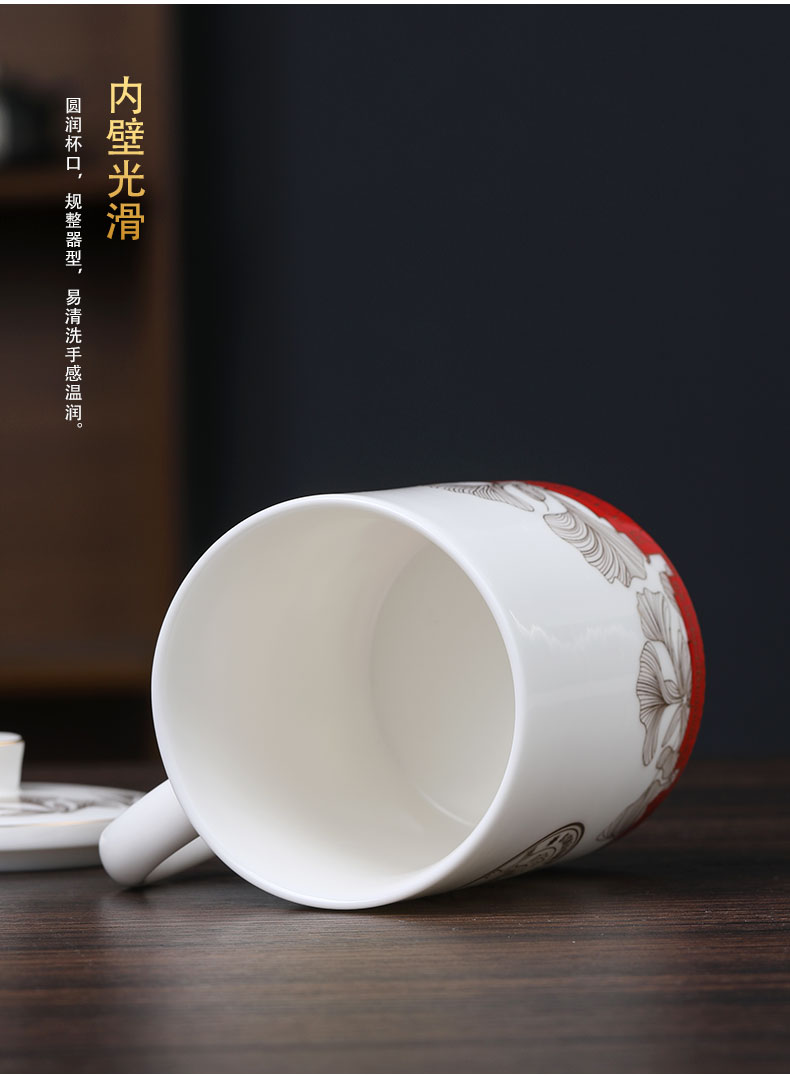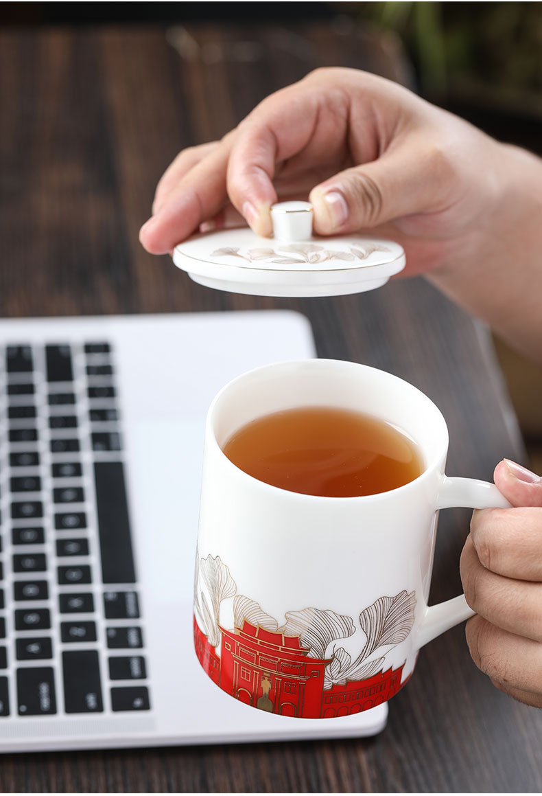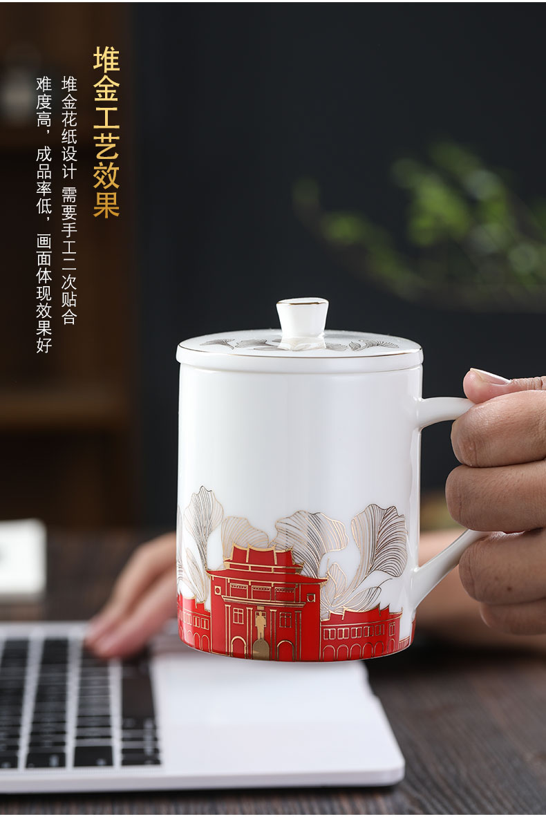 MULTIPOTENT YQ-CJF-CB-202111-04 350ml 中国风陶瓷带盖办公杯 白色(单位:套)