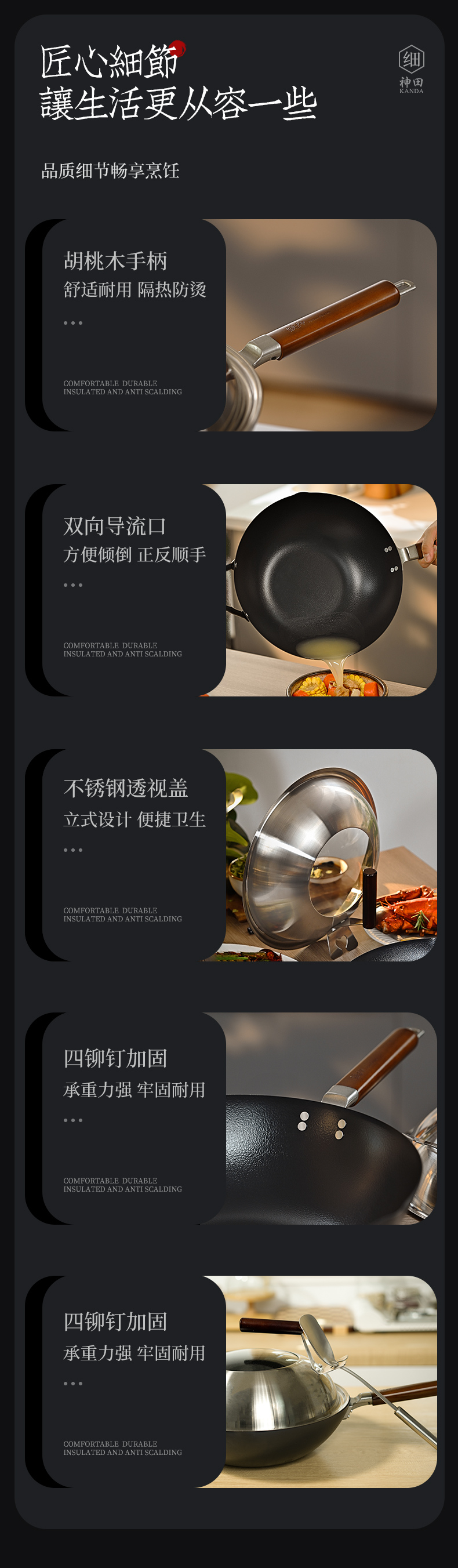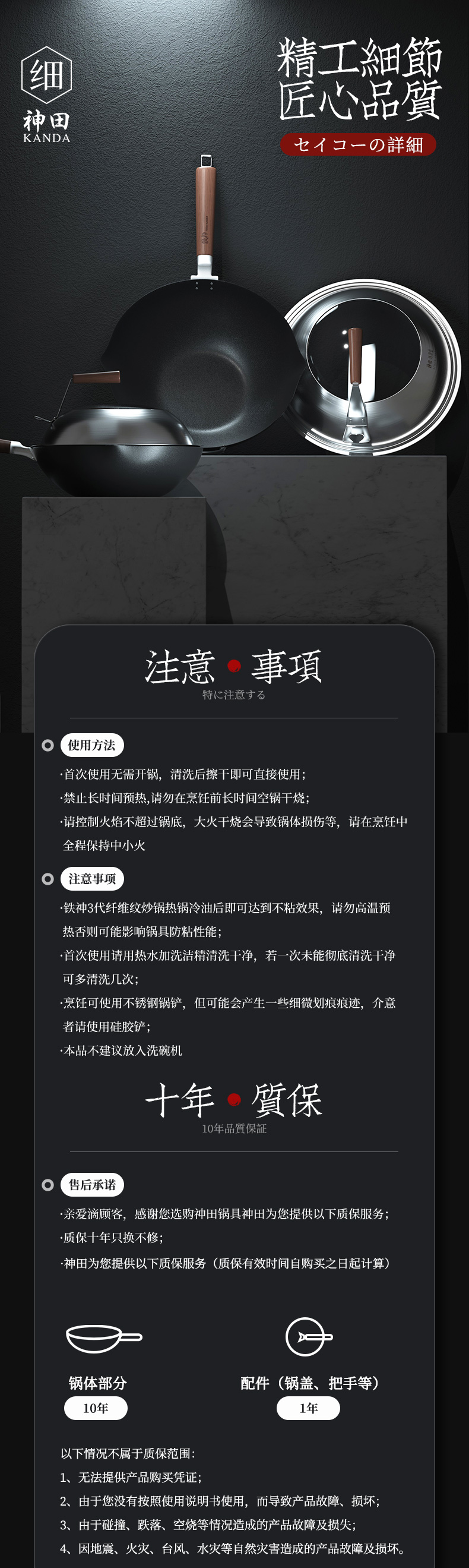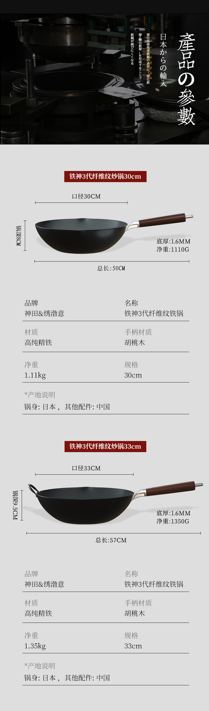 神田 炒锅 铁神3纤维纹 33cm 黑色(单位:个)