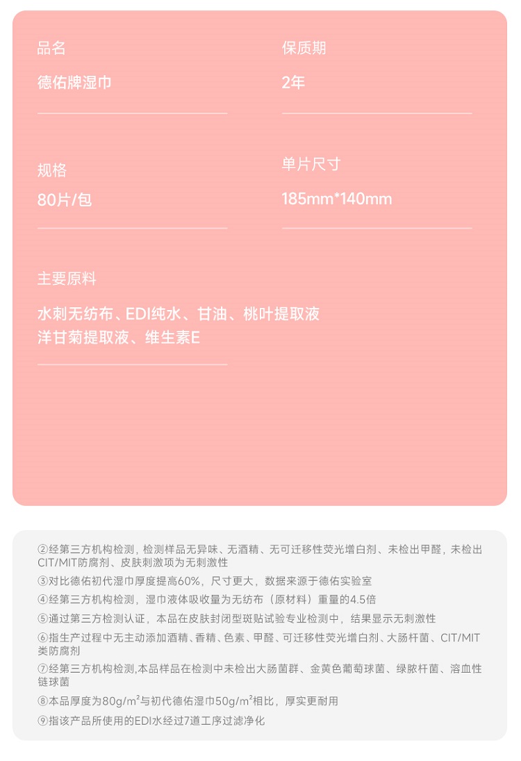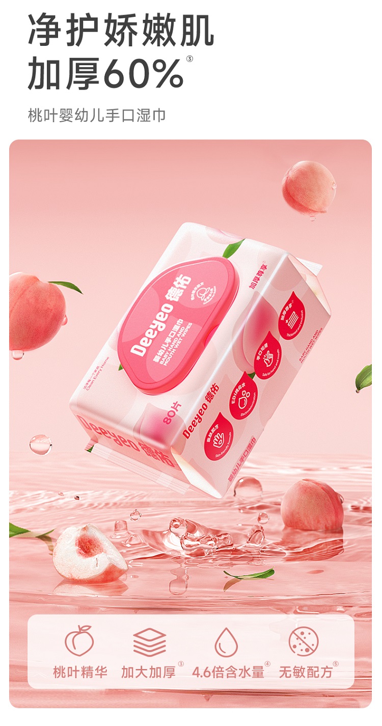 德佑 婴幼儿手口湿巾桃叶款 2007DYWP202 80片*1包 粉色(单位:包)
