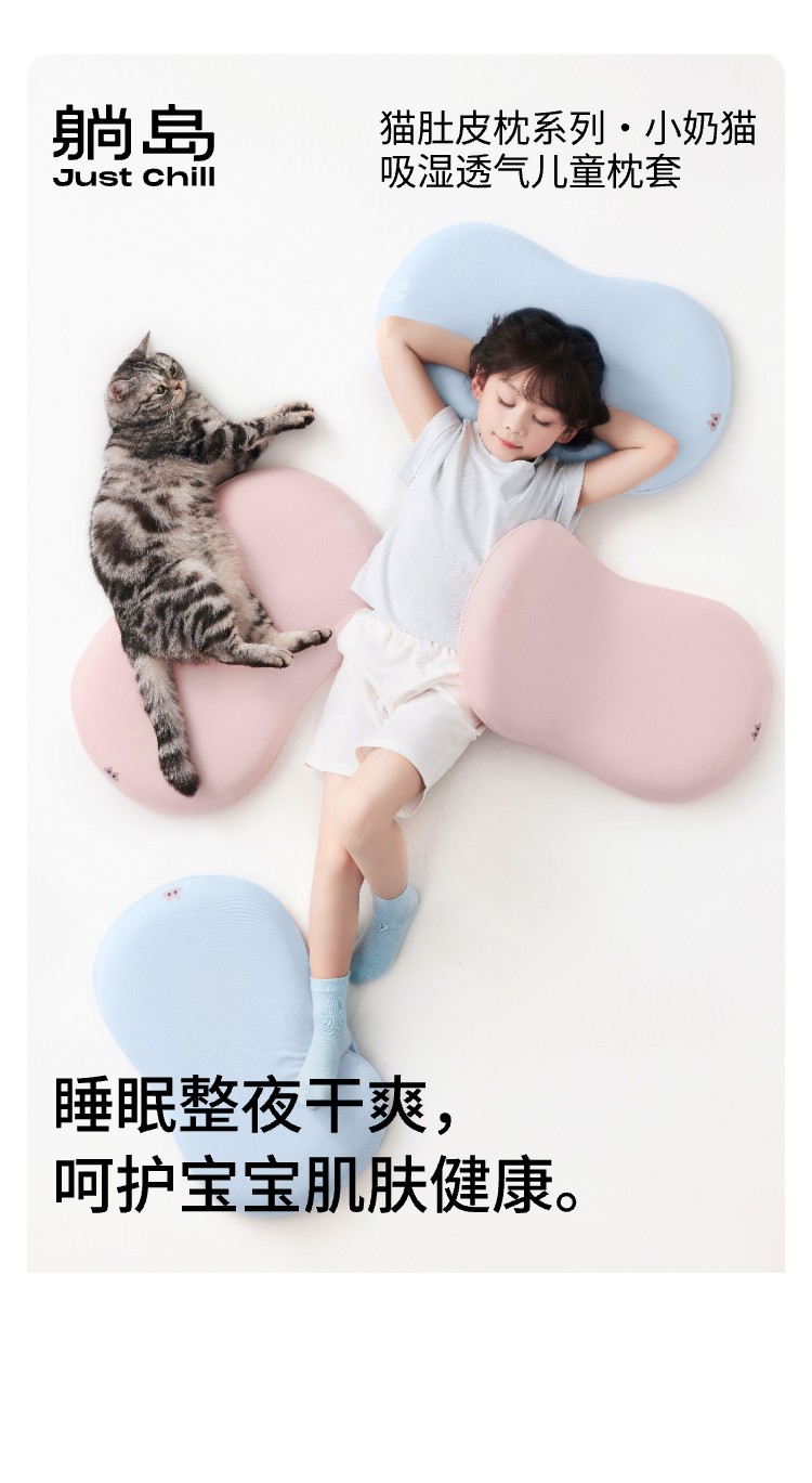 躺岛 猫肚皮吸湿透气儿童枕套 母婴A类枕套 54*30cm 蜜桃粉(单位:个)
