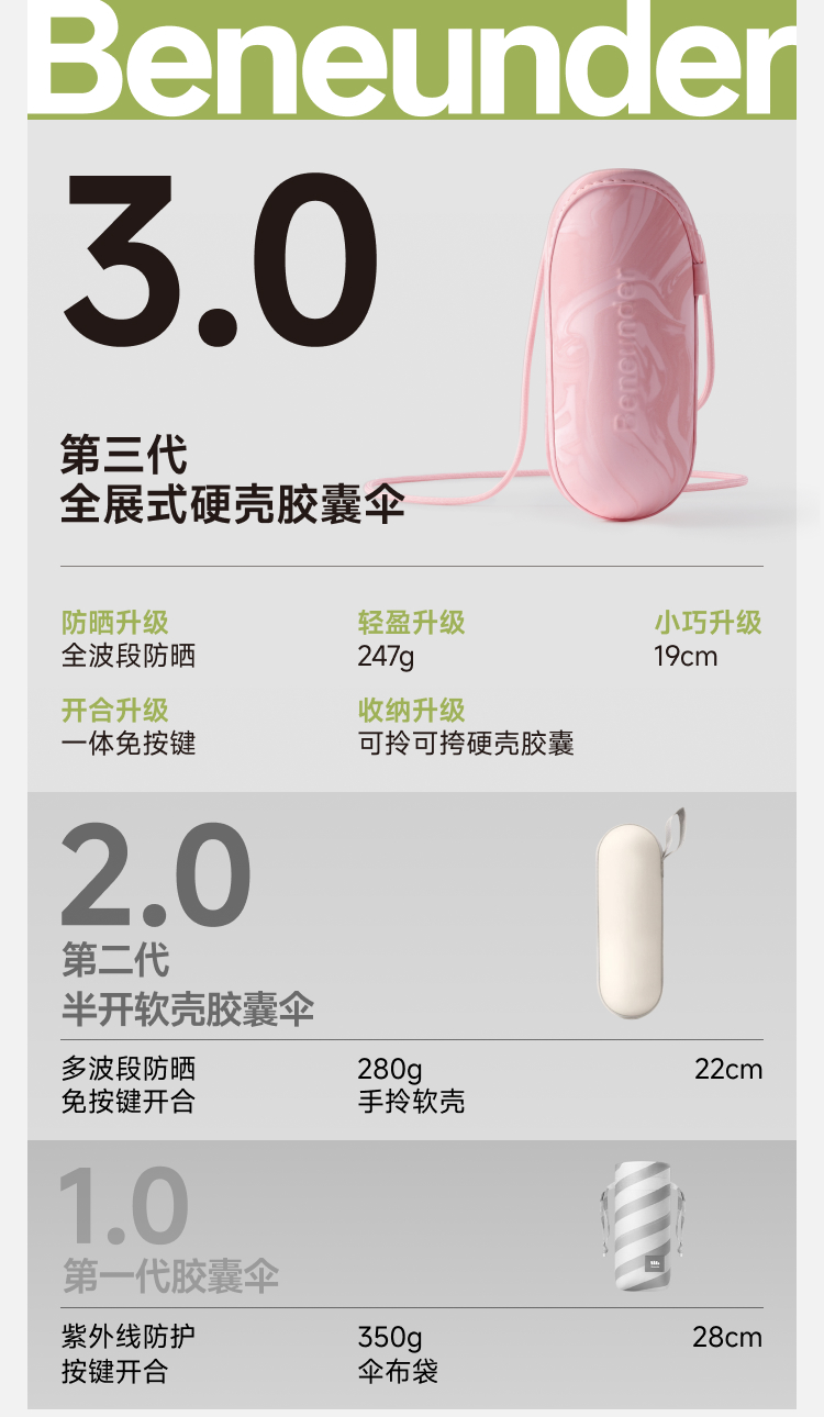 蕉下(beneunder) 黑胶胶囊防晒伞 BM525 五折 奶盐灰(单位:把)
