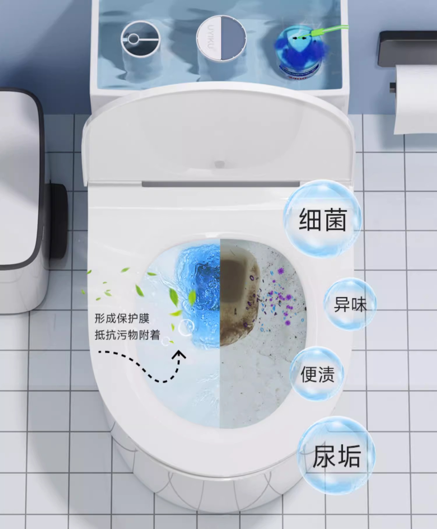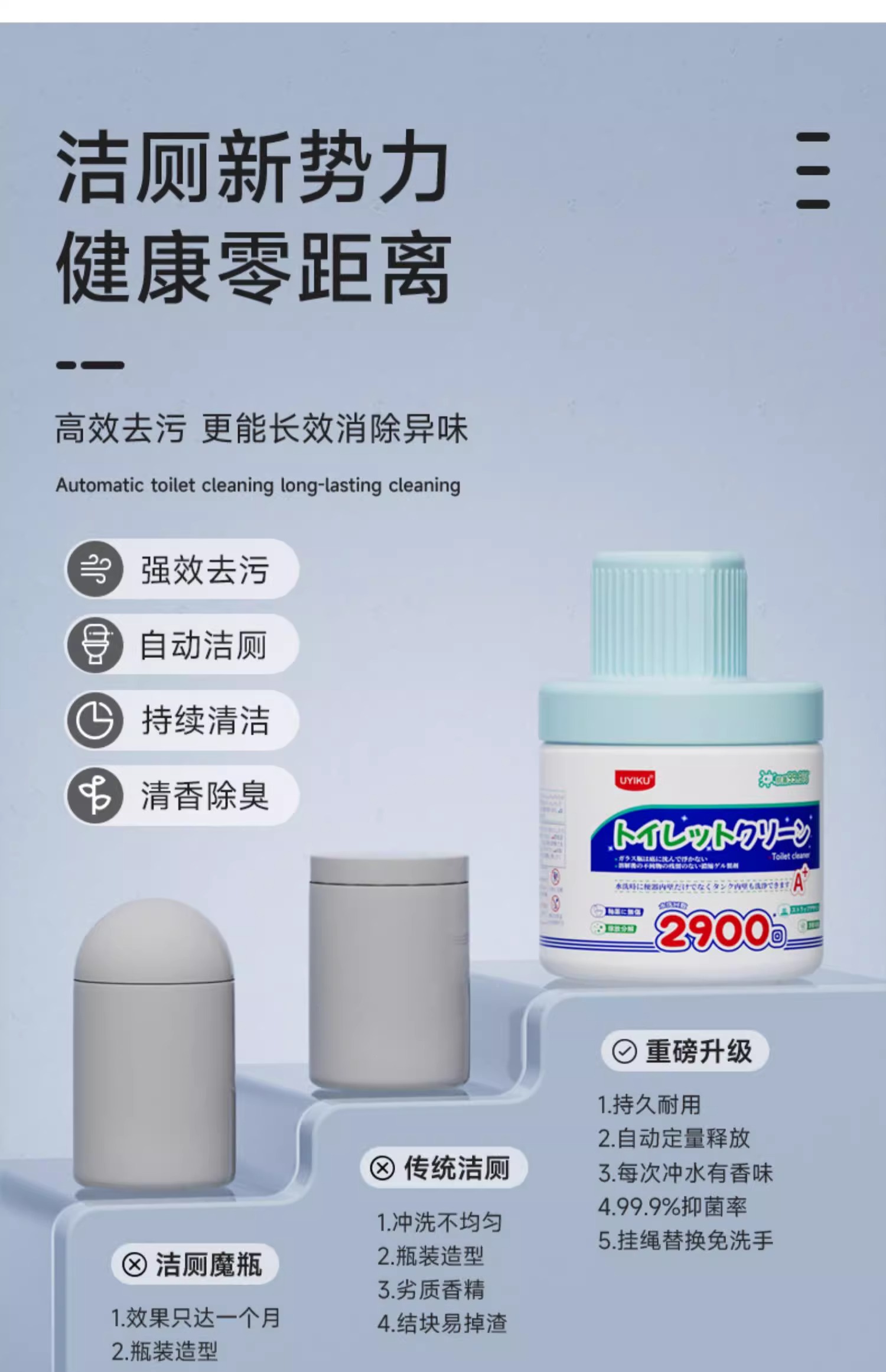 UYIKU物以可加强型马桶自动清洁剂强力除垢除臭清香型去污杀菌洁厕剂松木香260g/1瓶 蓝色