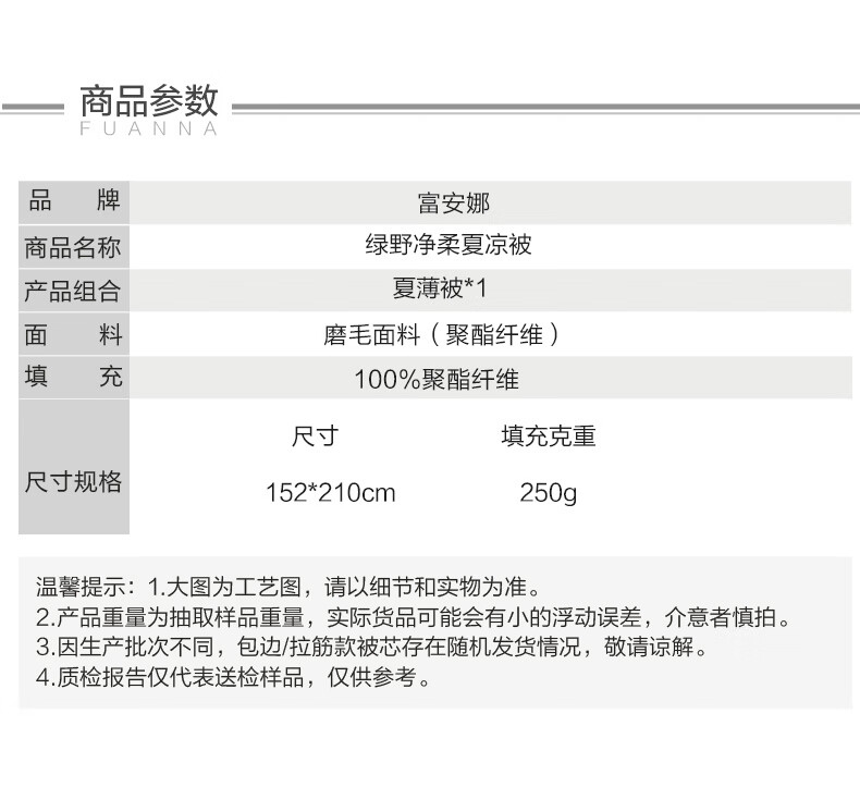富安娜 夏凉被 绿野净柔 152*210cm(250g) 浅绿色(单位:床)