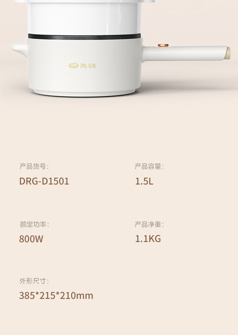 先锋(SINGFUN) 电火锅 DRG-D1501 1.5L 白色(单位:台)
