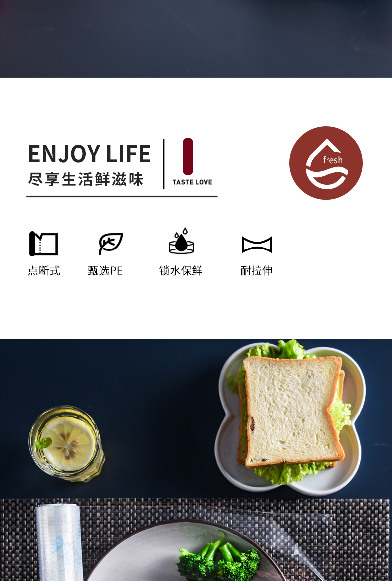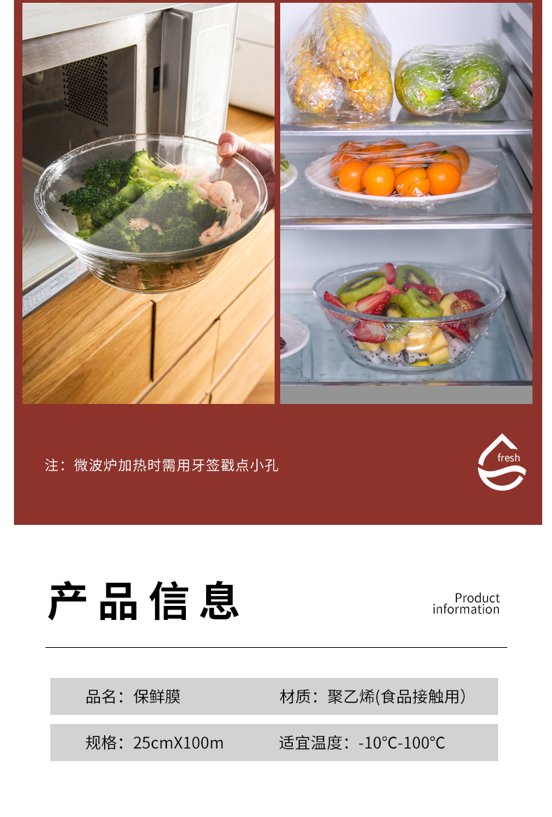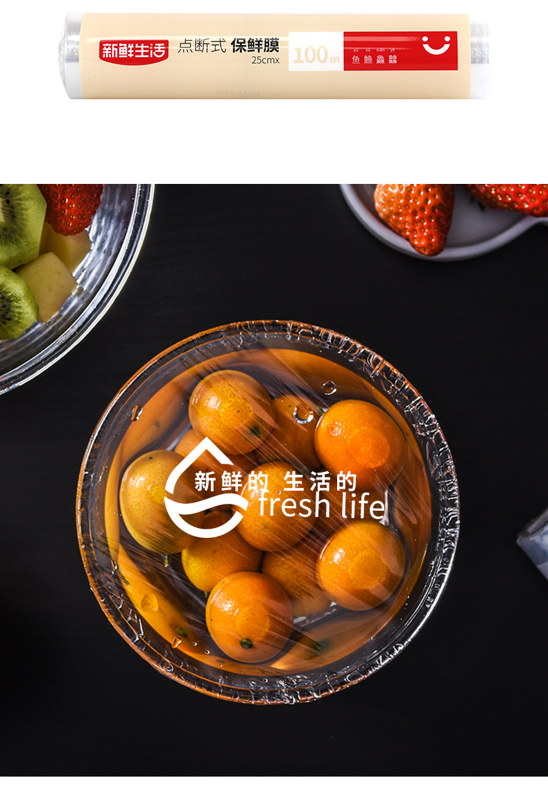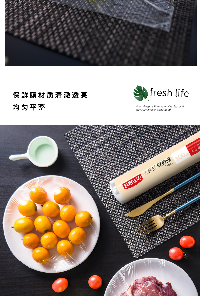 新鲜生活 一次性PE食品级手撕点断式保鲜膜 SH-8516 100m 透明色(单位:卷)