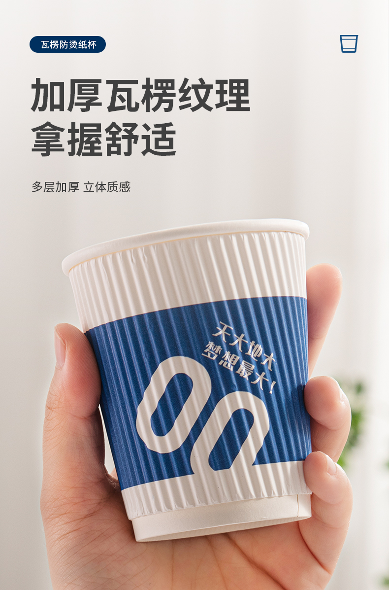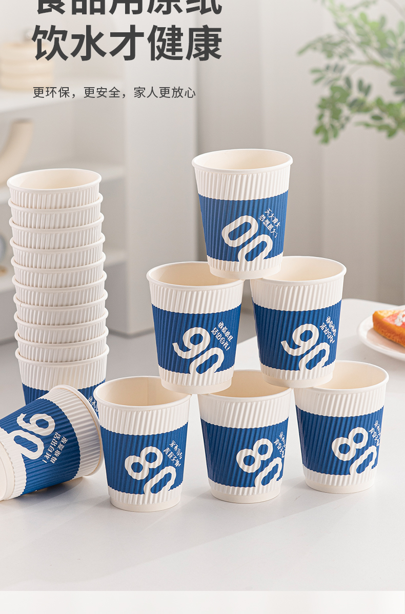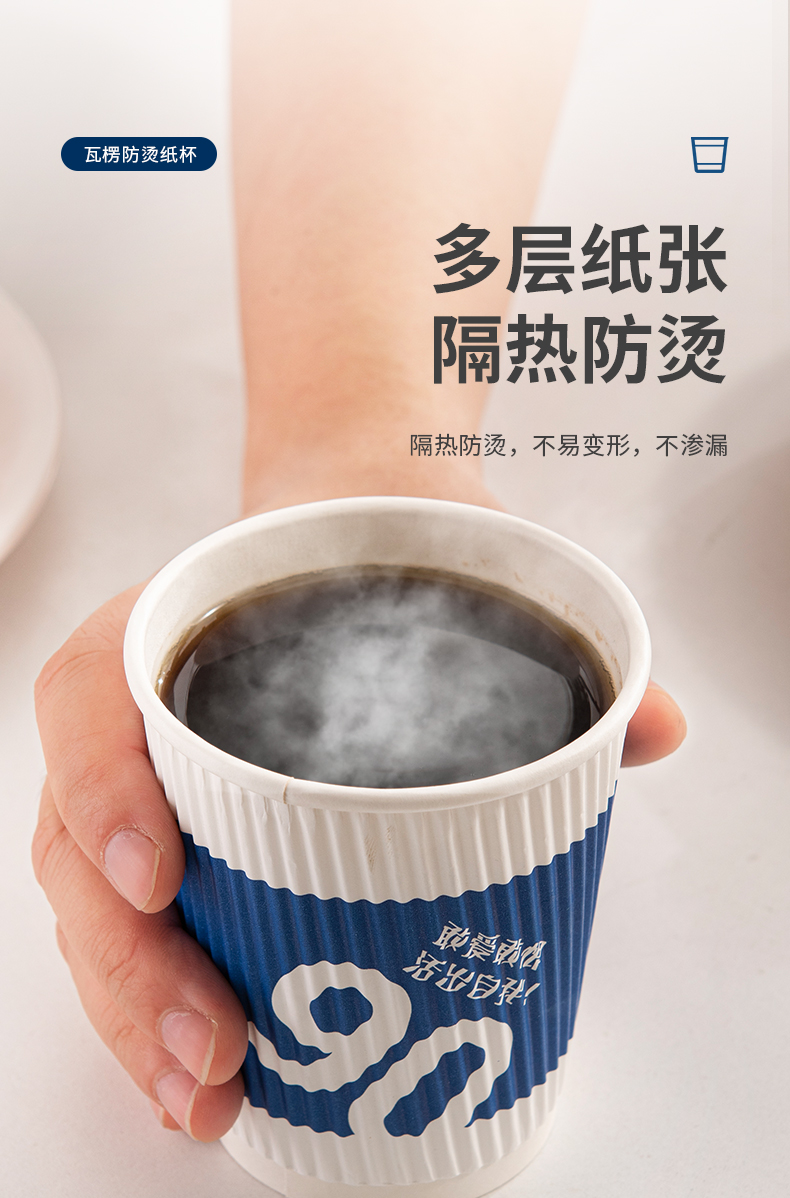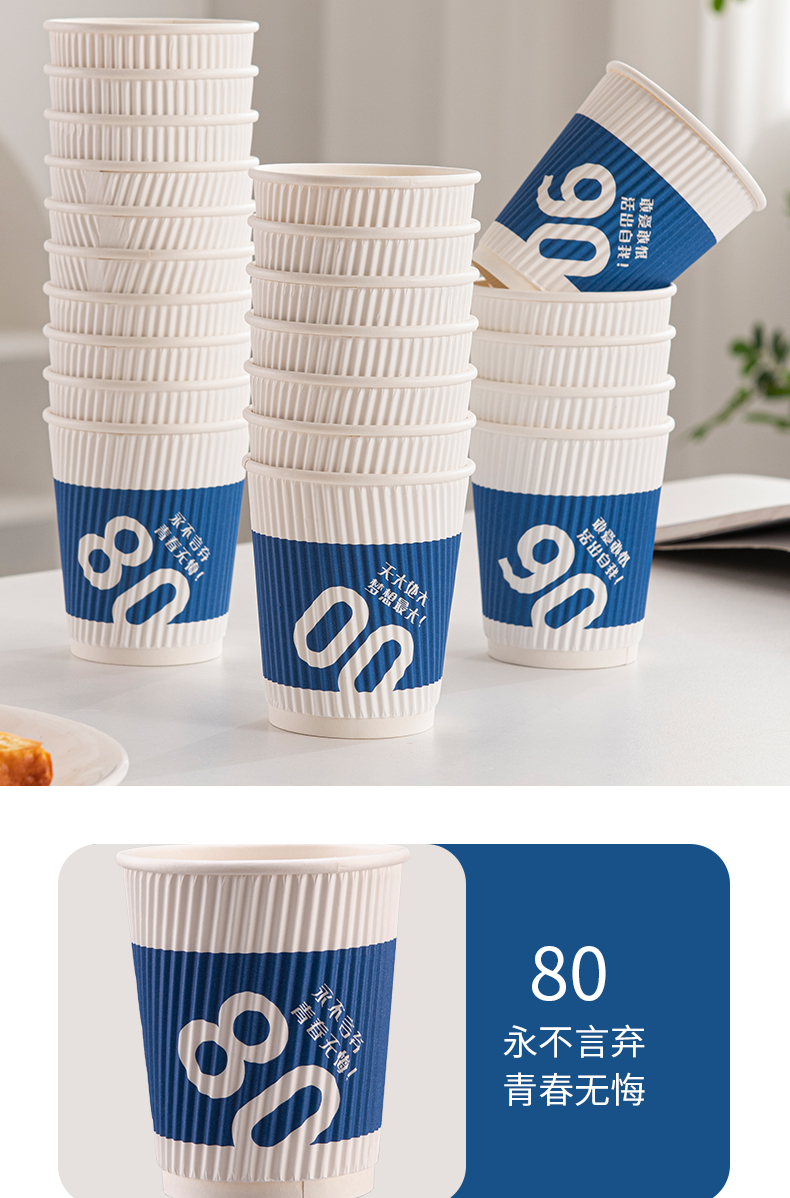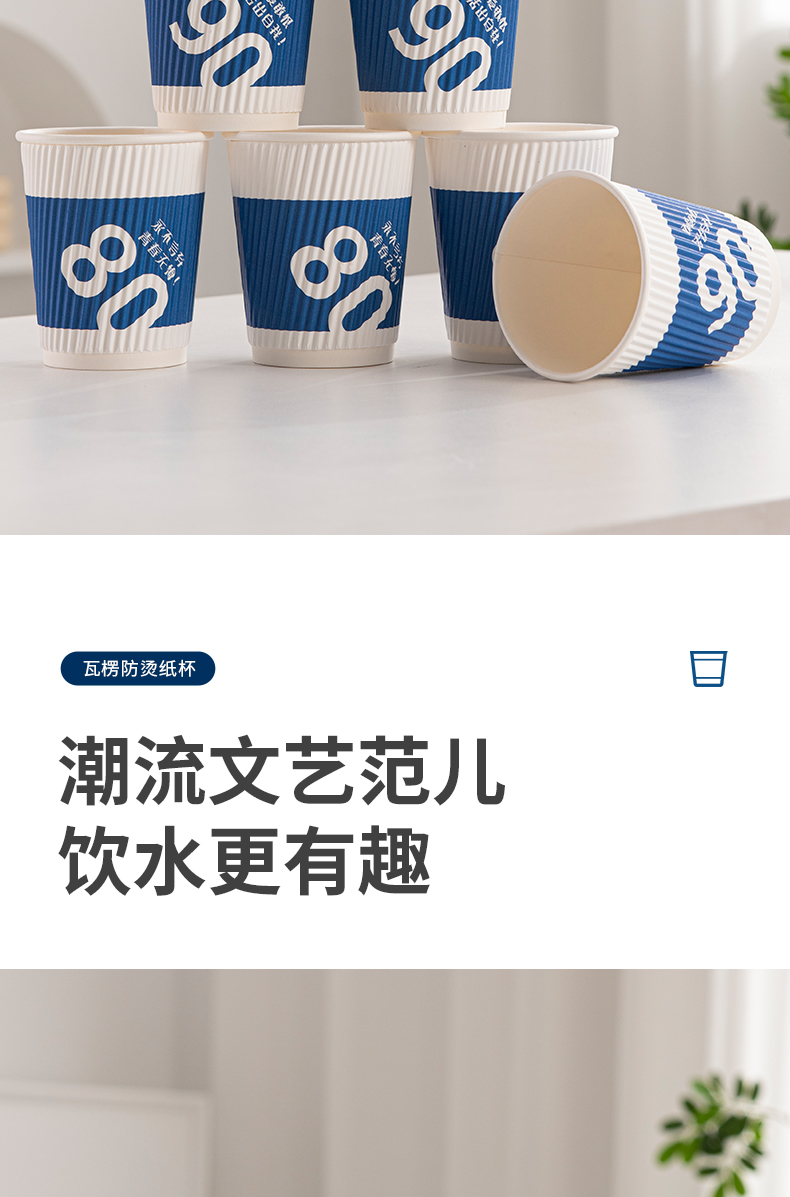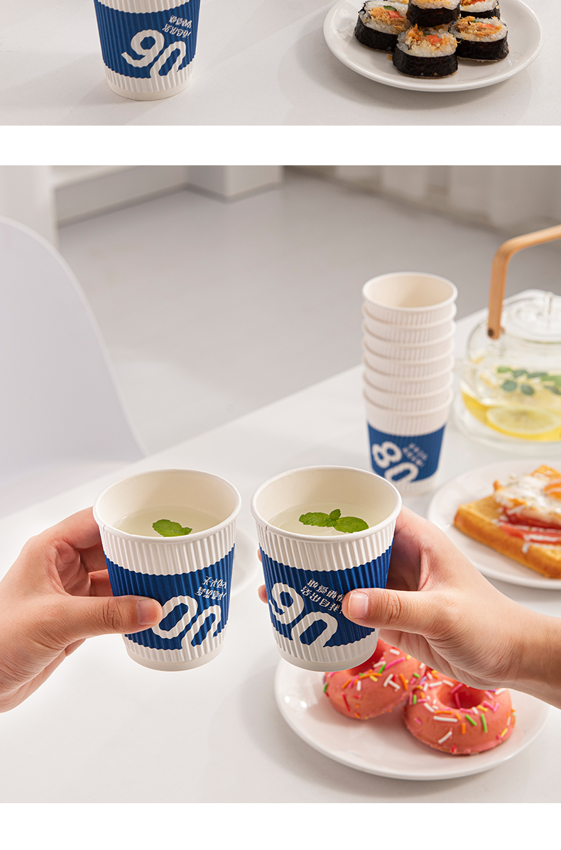 新鲜生活 一次性蓝色瓦楞杯四层防烫隔热纸杯 SH-9046 24只 蓝色(单位:包)