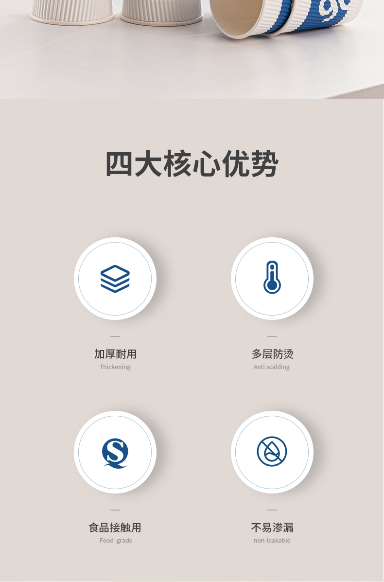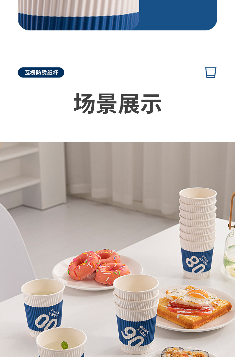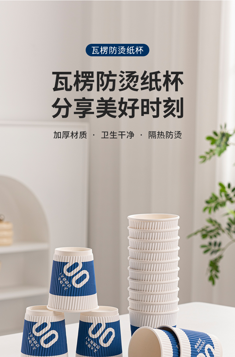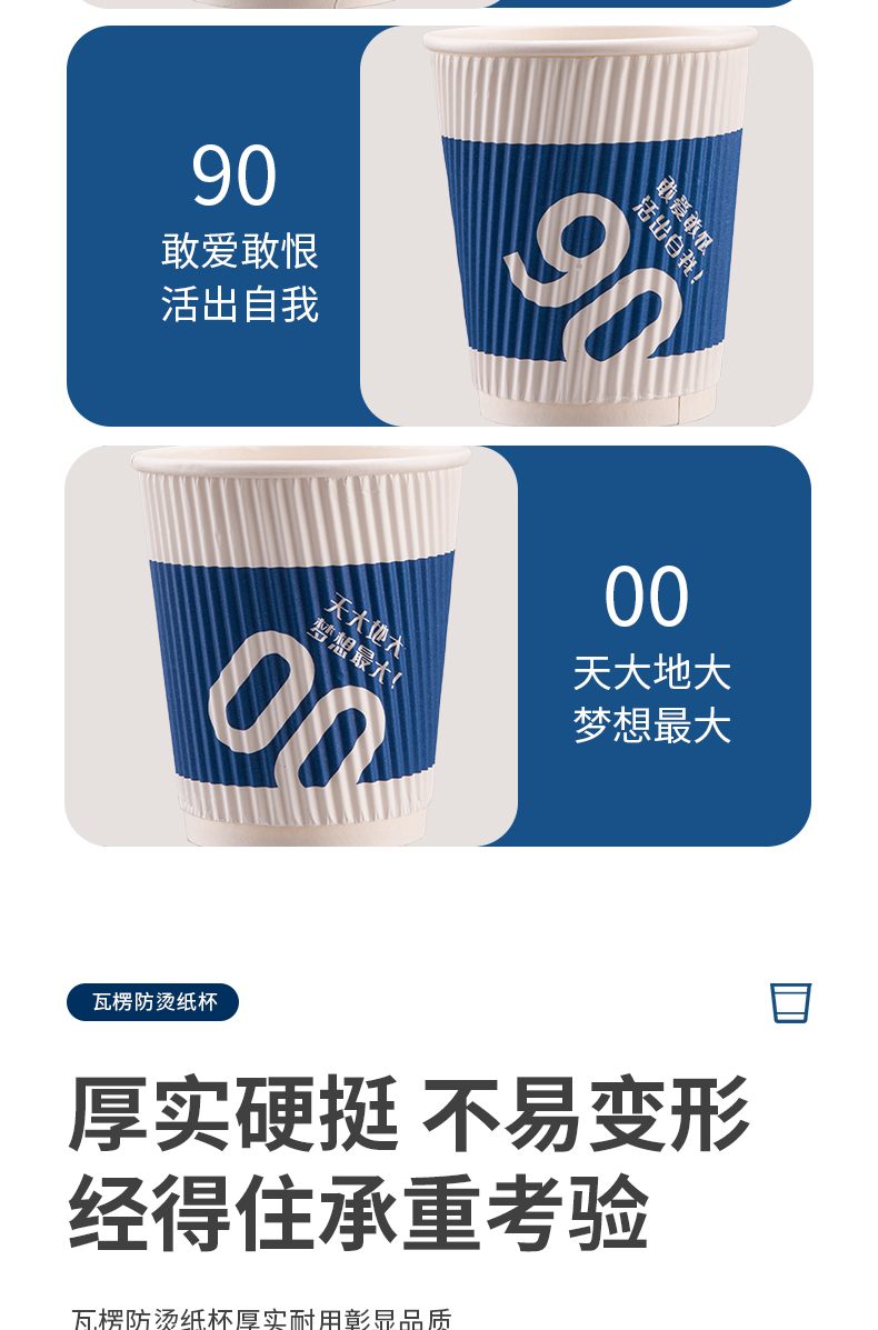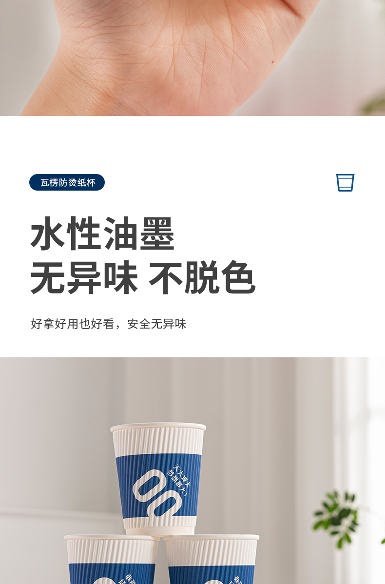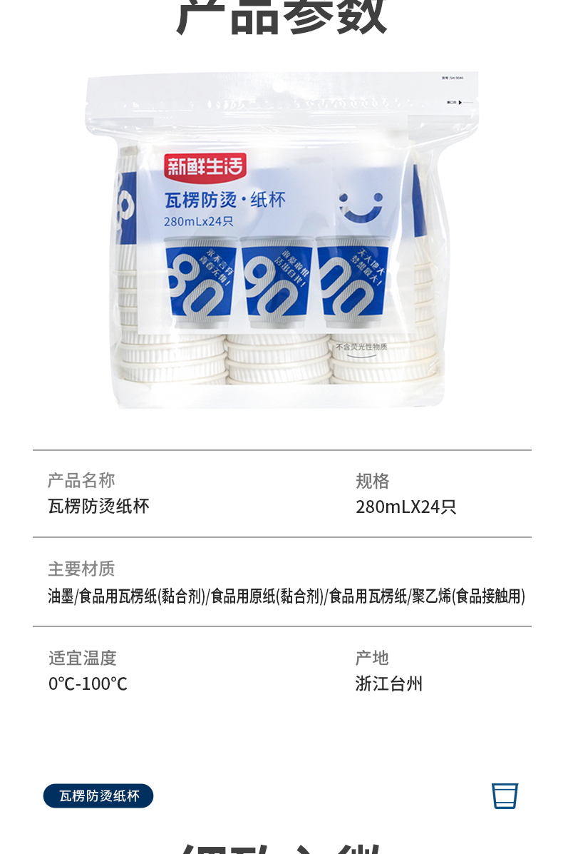 新鲜生活 一次性蓝色瓦楞杯四层防烫隔热纸杯 SH-9046 24只 蓝色(单位:包)