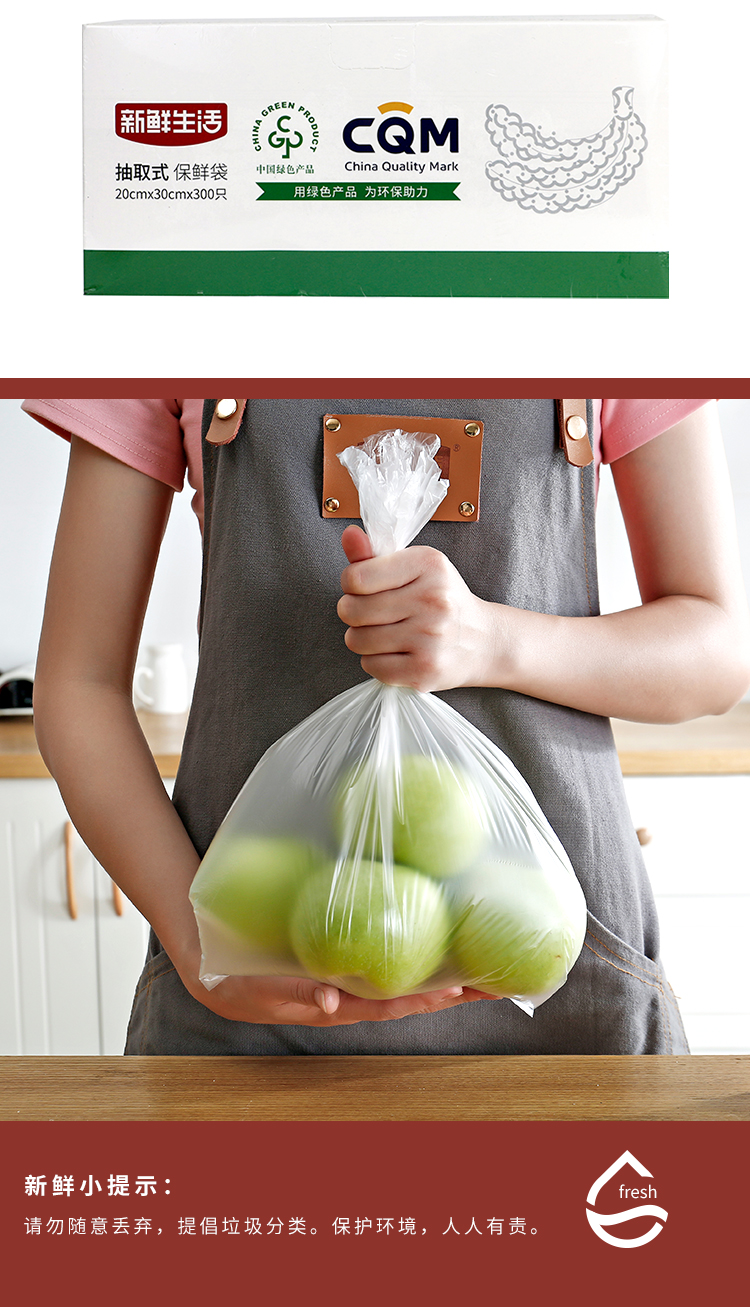 新鲜生活 新鲜生活盒装抽取式保鲜袋 SH-7398 300只 透明色(单位:盒)