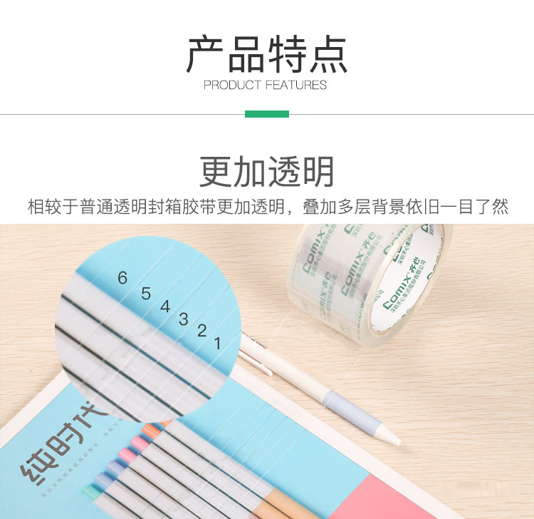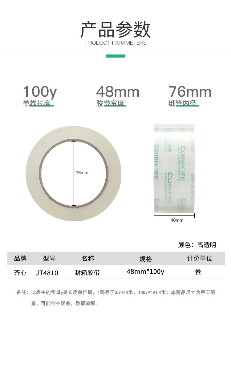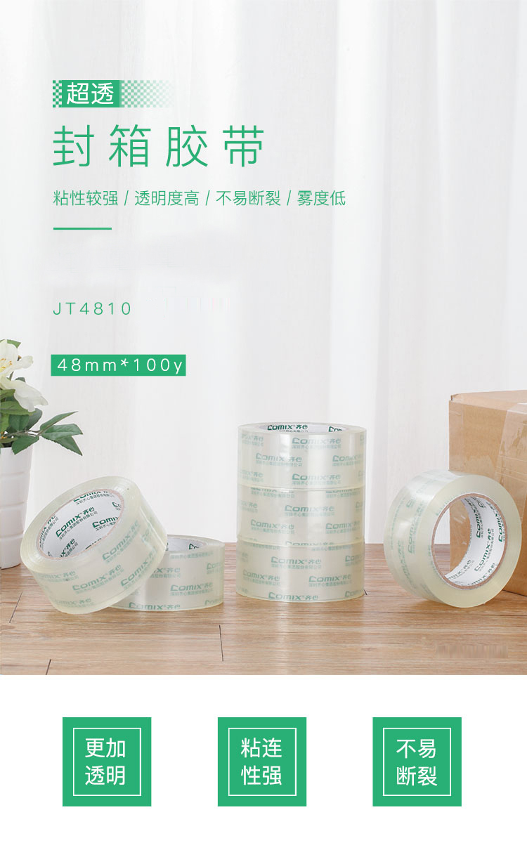 齐心(COMIX) 封箱胶带 JT4810 48mm*100y 单卷装 透明色(单位:卷)
