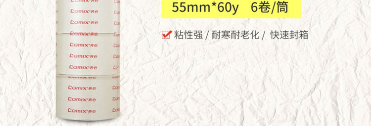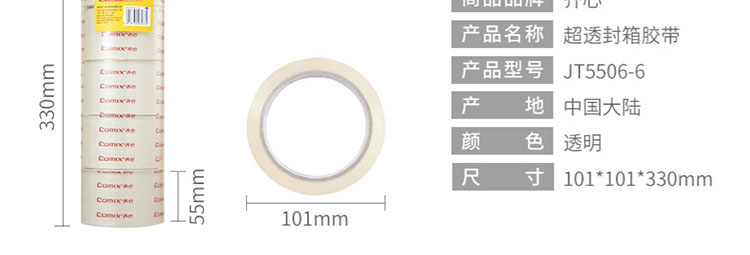 齐心(COMIX) 封箱胶带 JT5506-6 55mm*60y 6卷/筒 透明色(单位:筒)