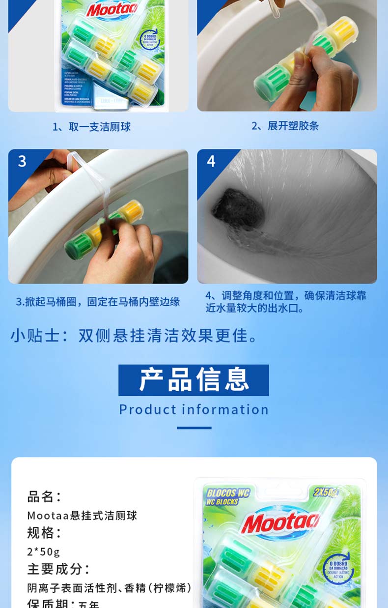 膜太/MOOTAA 悬挂式洁厕球 去异味 2*50g板 蓝色(单位:板)