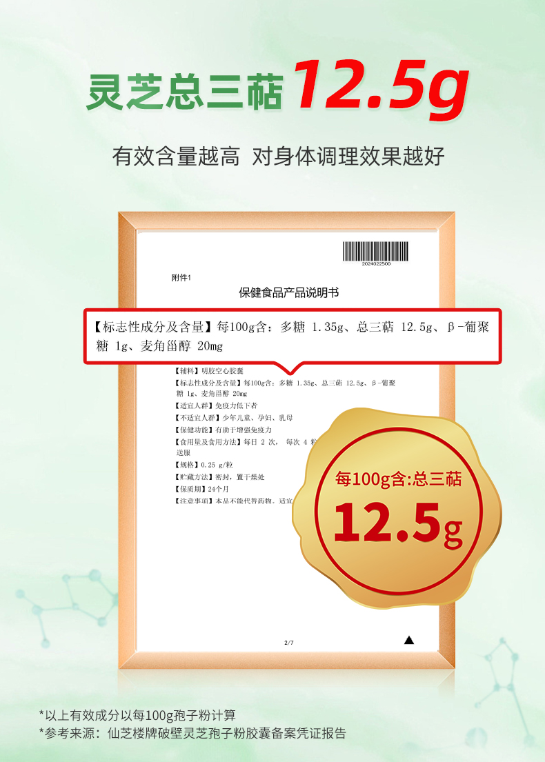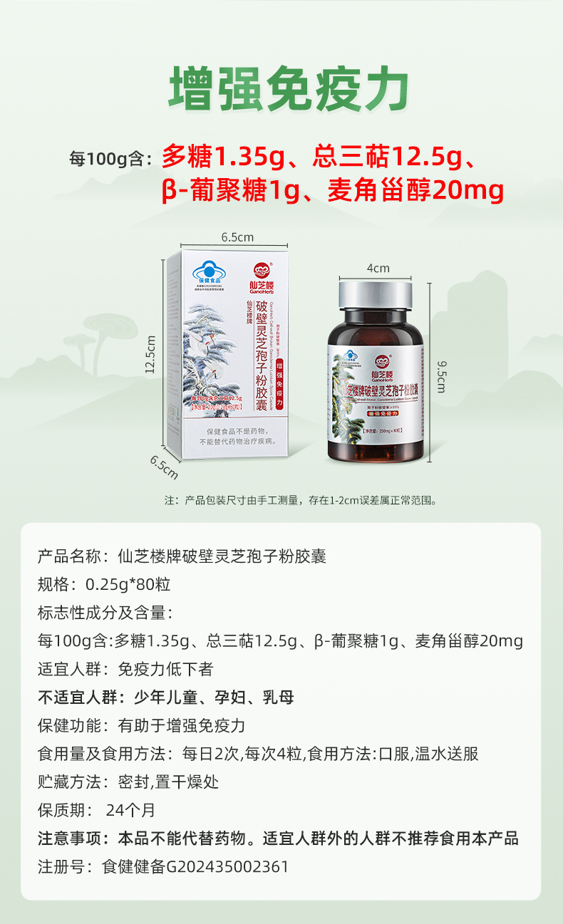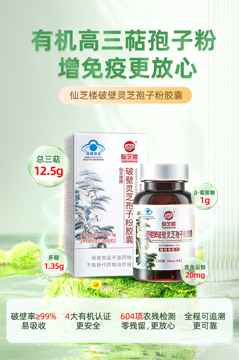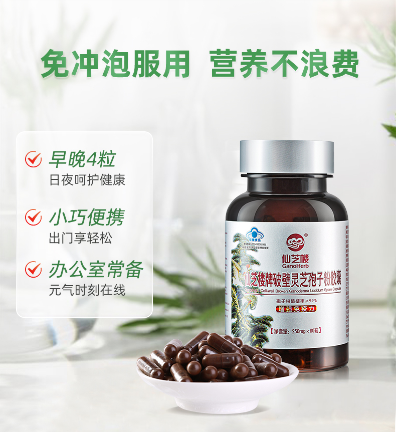 仙芝楼 破壁灵芝孢子粉 胶囊 250mg/粒×80粒/盒 银色(单位:盒)