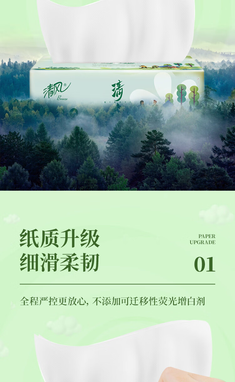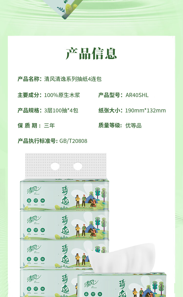 清风 清逸系列软抽纸 AR40SHL 190*132mm*100抽*4包 本白色(单位:提)