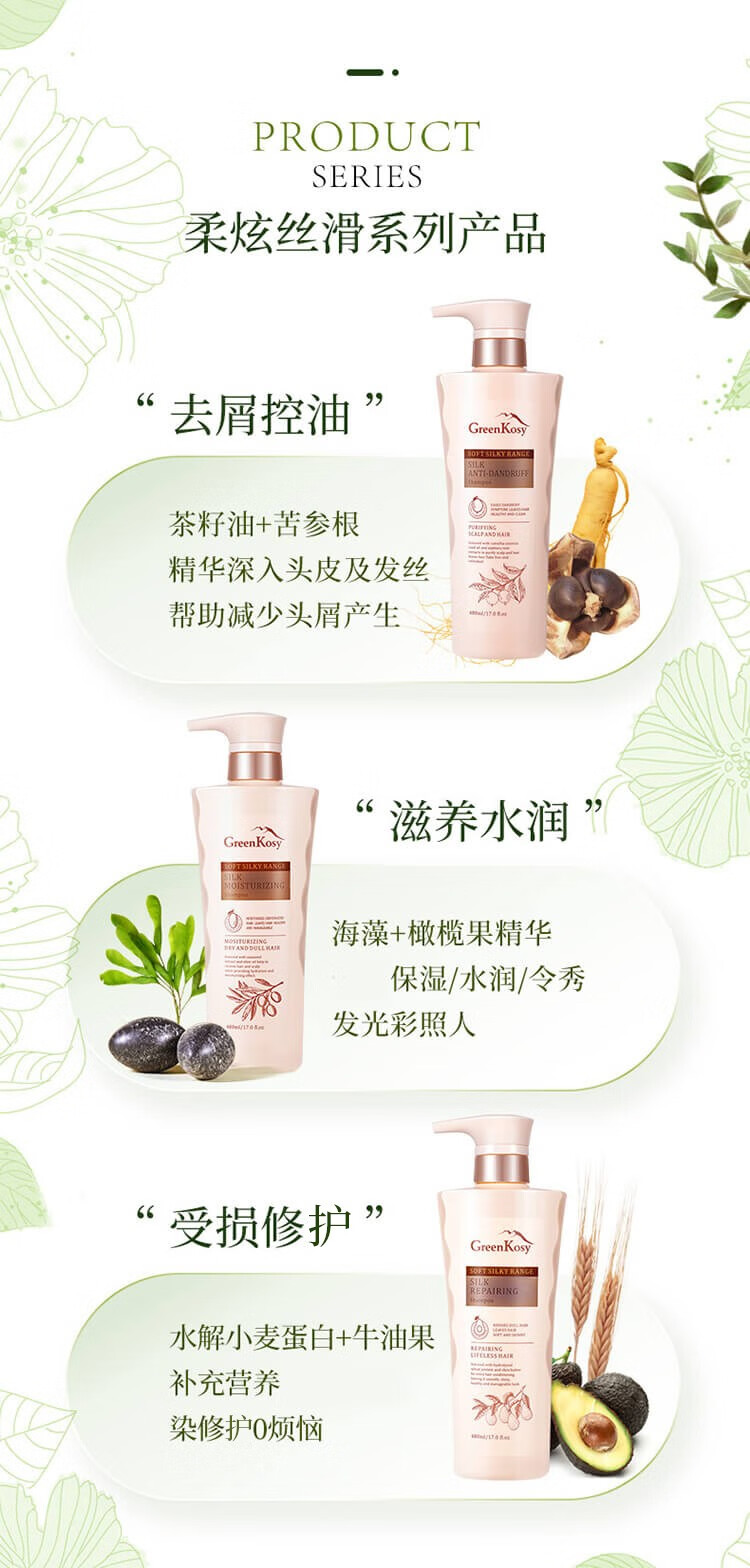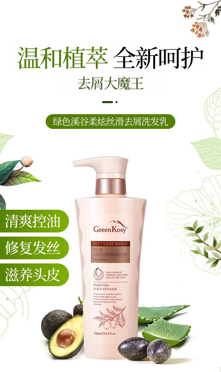 绿色溪谷(GREENKOSY) 洗发水 丝滑去屑 700ml 白色(单位:瓶)