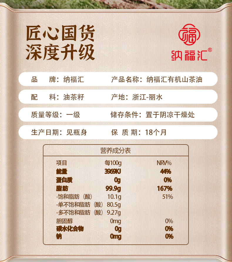 纳福汇 吉祥有机山茶油单瓶 G-01 500ml 红色(单位:盒)